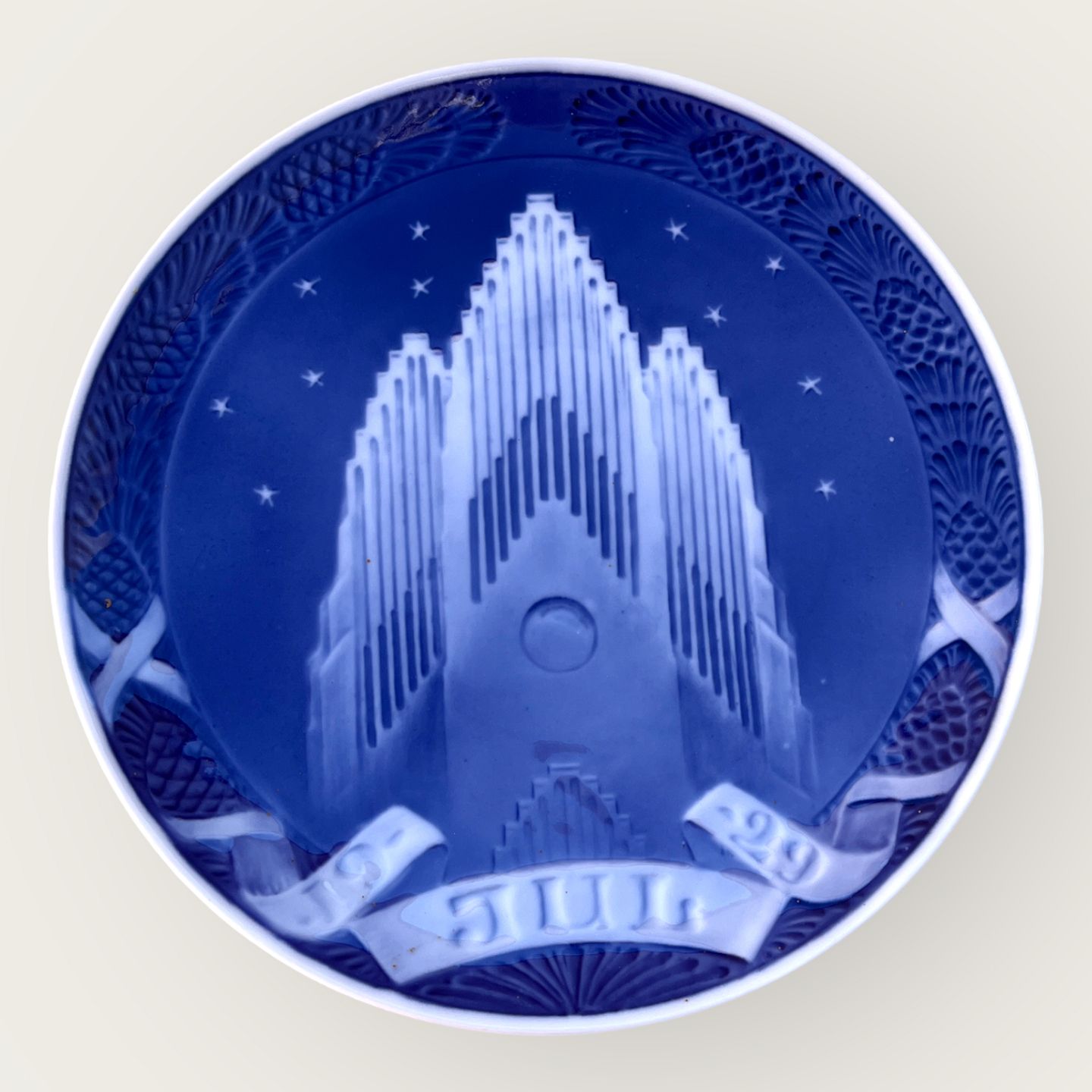 Royal Copenhagen, Christmas plate, 1929, Grundvig church tower, 18cm in diameter, Design Oluf Jensen *Perfect condition*