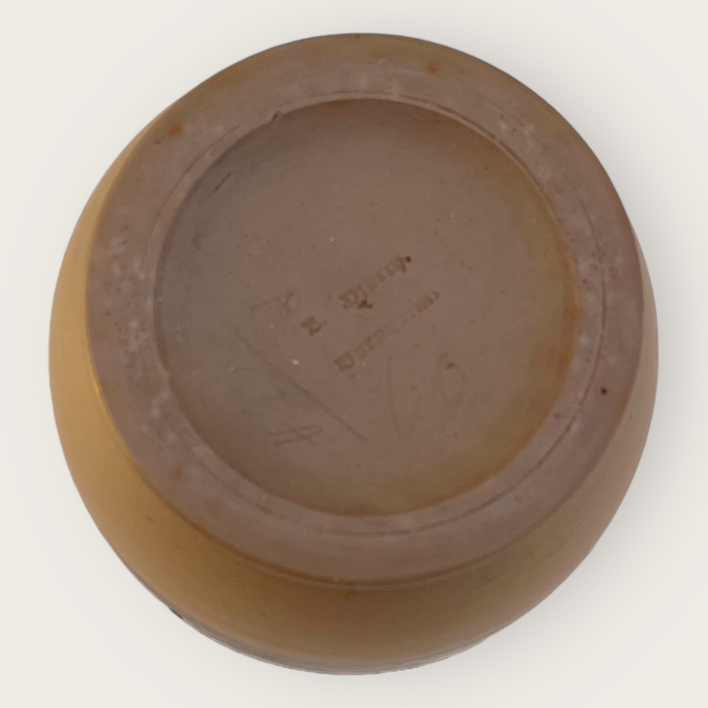 Bornholm ceramics, Hjorth, Brown stoneware, No. 60, With ornament motif, 9.5 cm high, 9 cm in diameter *With small glaze defect on the edge*