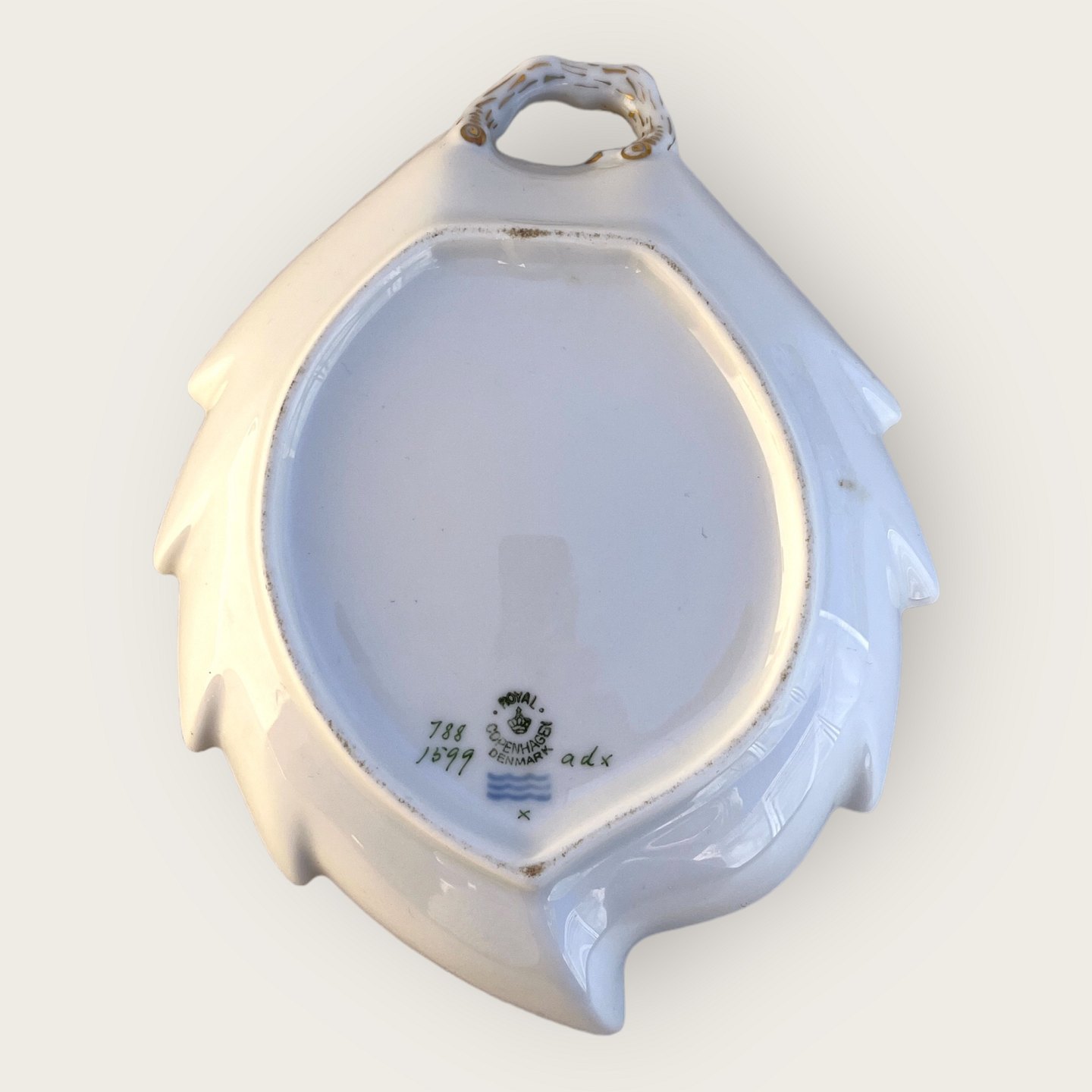 Royal Copenhagen, cream swirl, Leaf dish #788/ 1599, 22.5cm wide, 18cm deep, 1st grade *with small sulfur spot*
