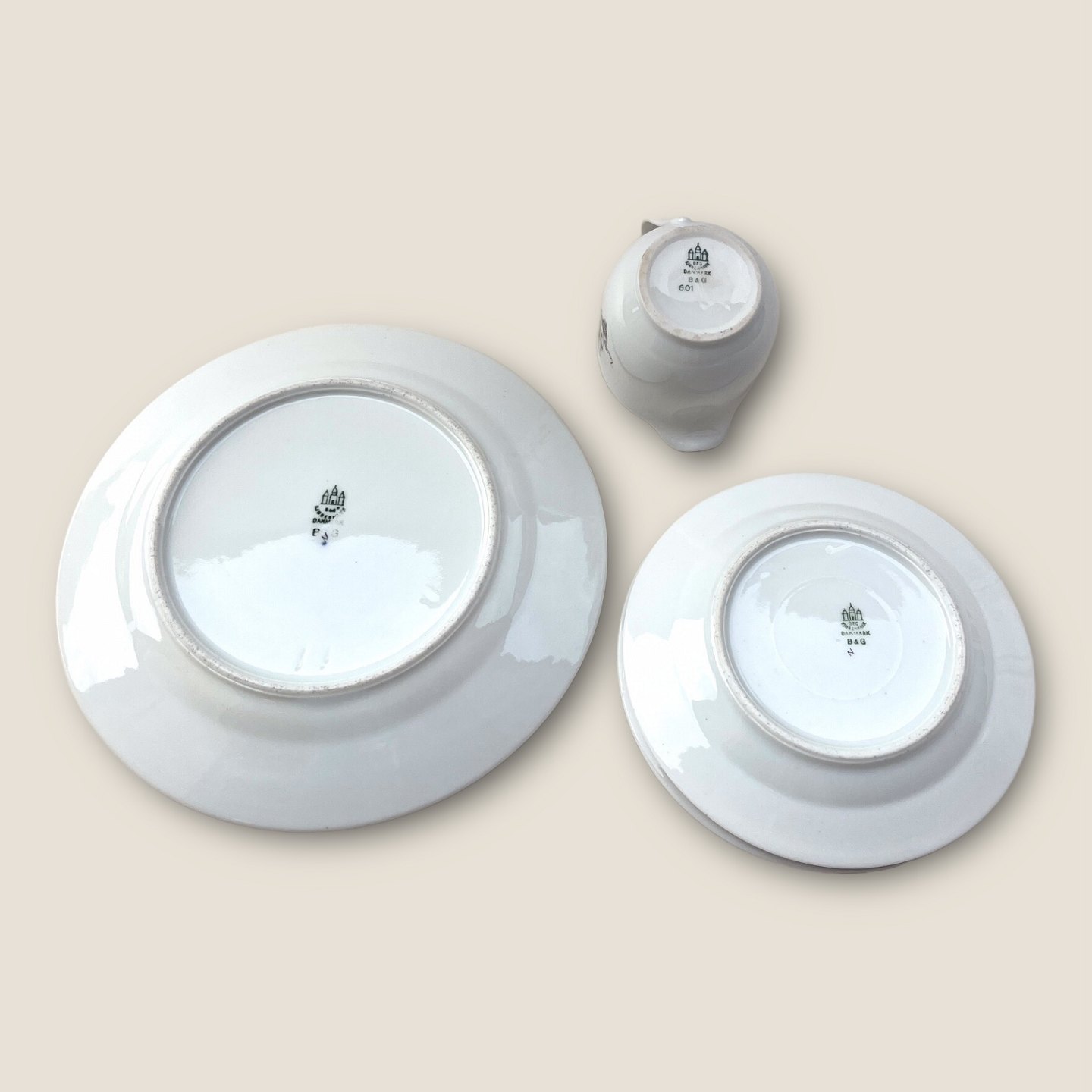 Bing & Grøndahl, Wine porcelain 4 parts, Creamer 6cm high, plate 2 pieces 15.2cm in diameter, Plate 21cm in diameter *Nice condition*