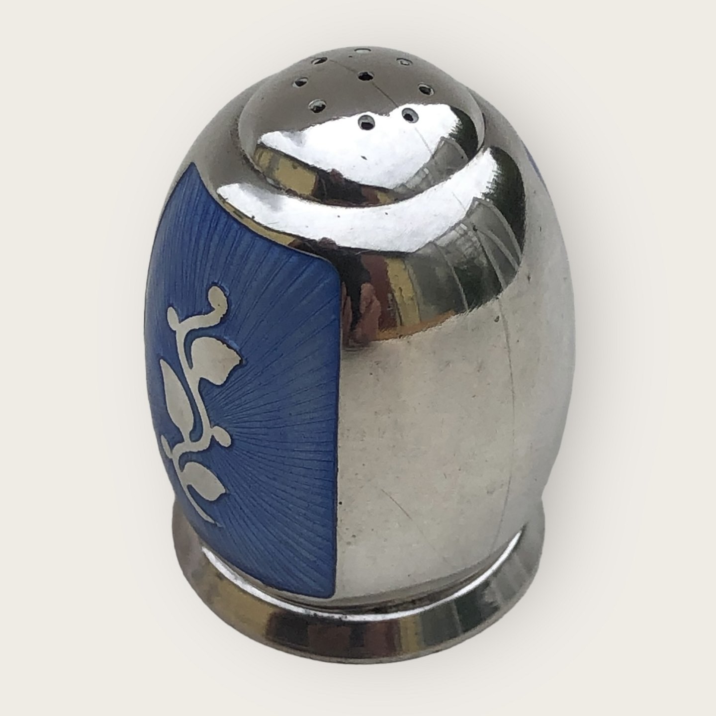 Salt shaker in sterling silver and enamel from Volmer Bahner, Nice condition, Height 4cm.