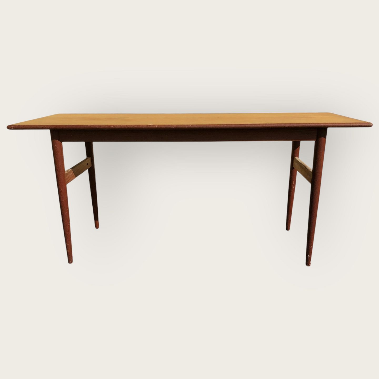 Coffee table in teak veneer, Danish modern from the 1960s, Shows traces of use (see photo), Dimensions: HxWxL 52x52x120