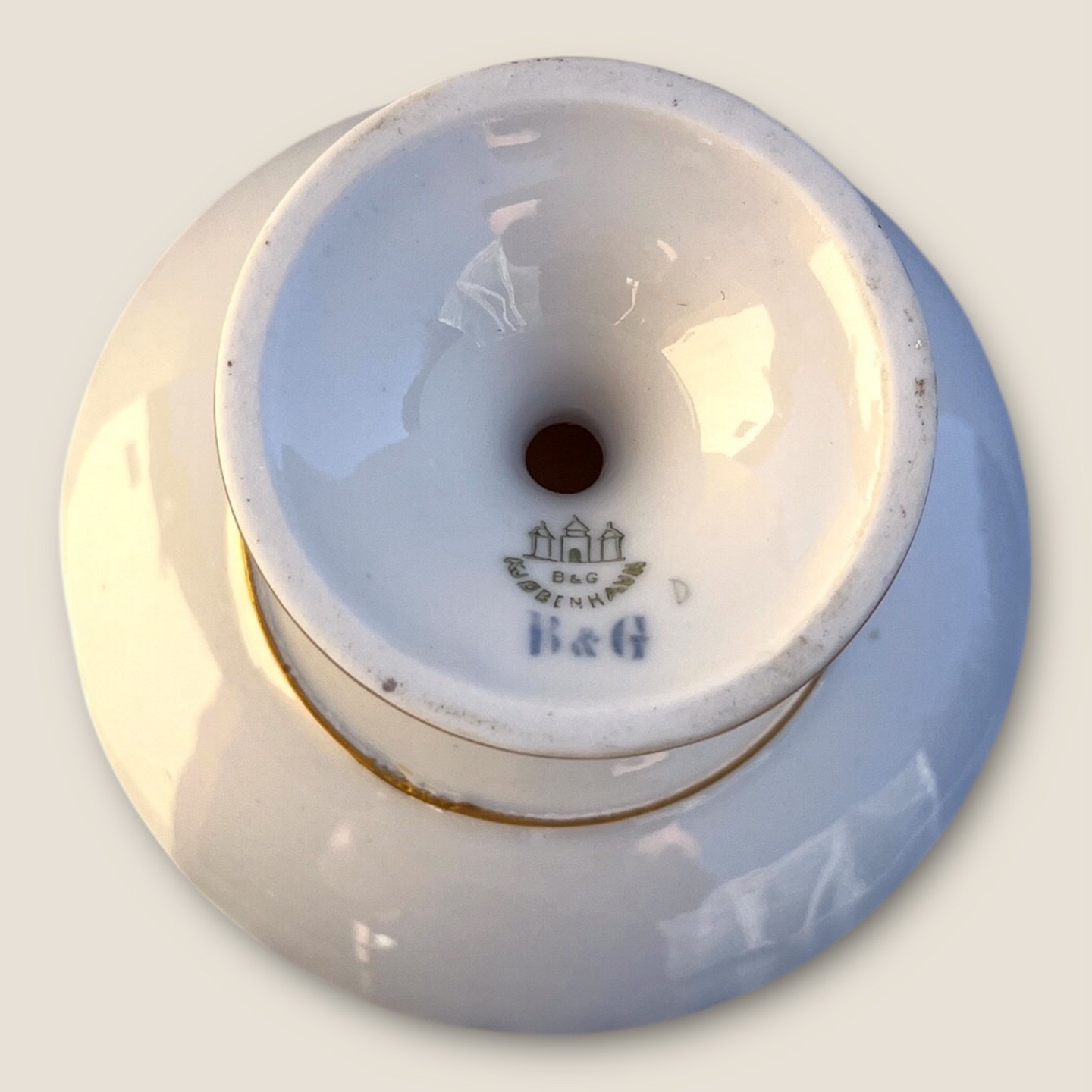 Bing & Grøndahl, Seagull with gold, Small cake stand, 12cm in diameter, 6.5cm high, 2nd grade *With glaze defects and unevenness on edge and base*