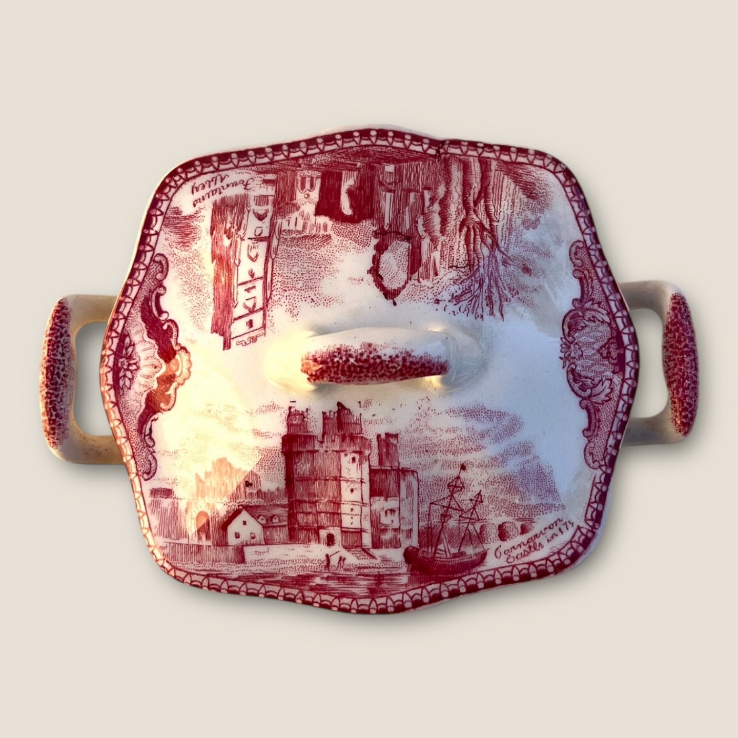English earthenware, Old Britain Castles, Sugar bowl, 12cm wide, 9cm deep, 7cm high *Nice condition*
