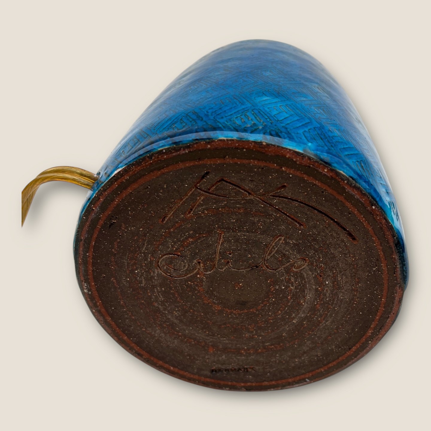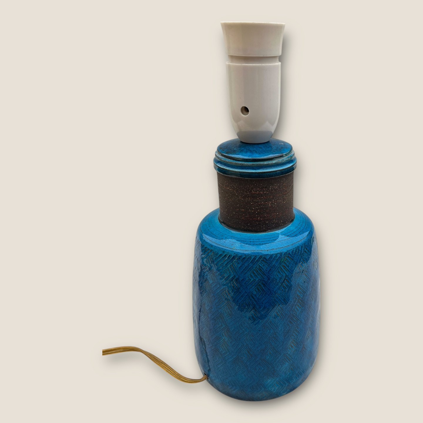 Kähler ceramics, Blue glazed table lamp, 28cm high (incl. socket) 11cm in diameter, Signed HAK Nils *Nice condition*