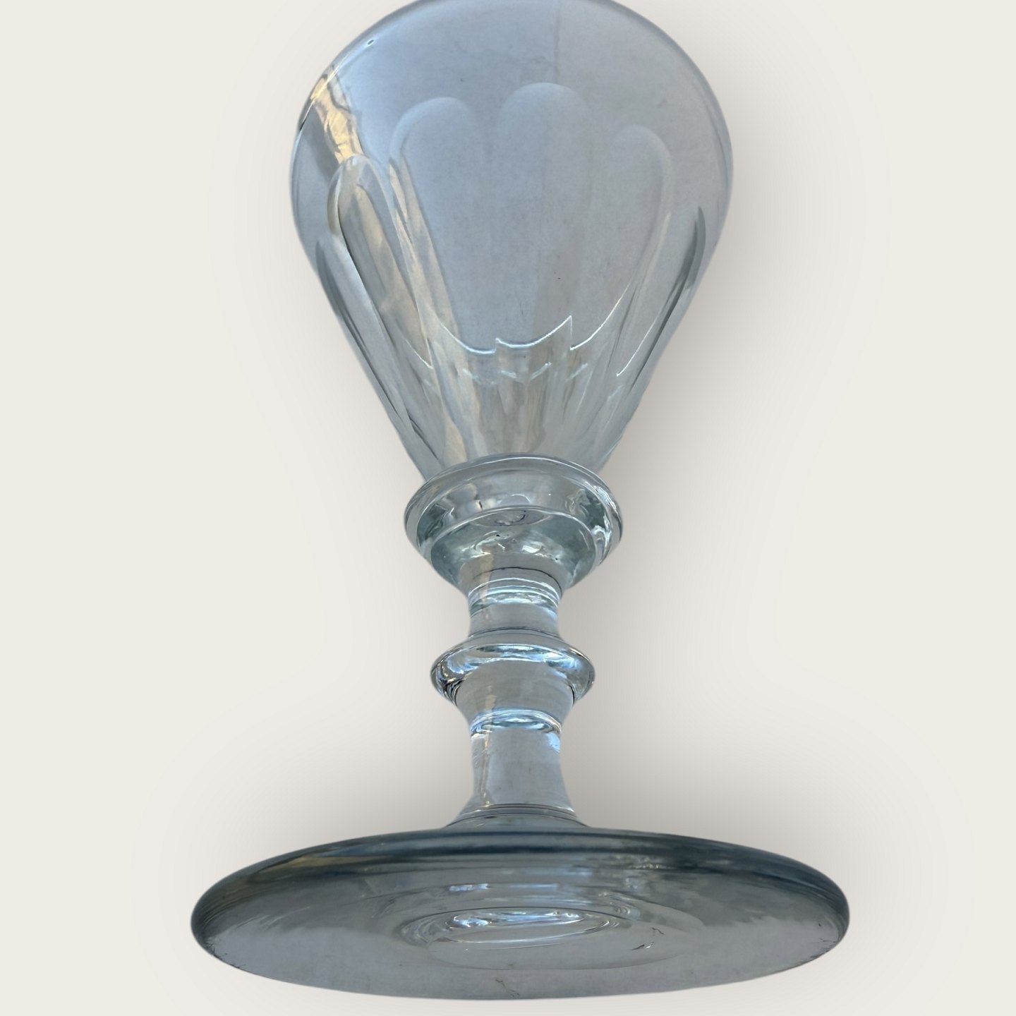 Anglais, faceted glass, ball-cut at the bottom, Height 13.5cm, Diameter at the top 8.5cm, Diameter at the base 7.2cm, A few air bubbles.