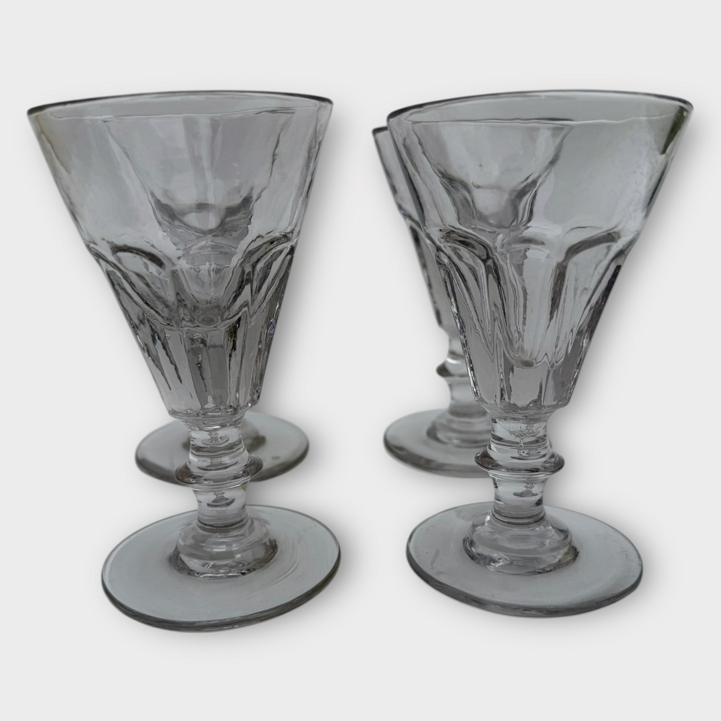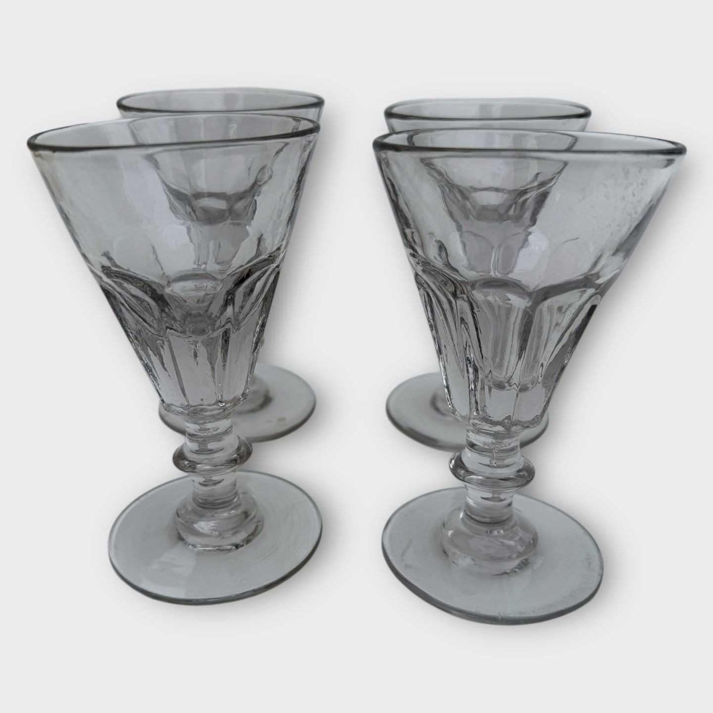 Older mold-blown glass with a ball-ground bottom. Probably French. Height approx. 13.5cm, diameter 8cm
