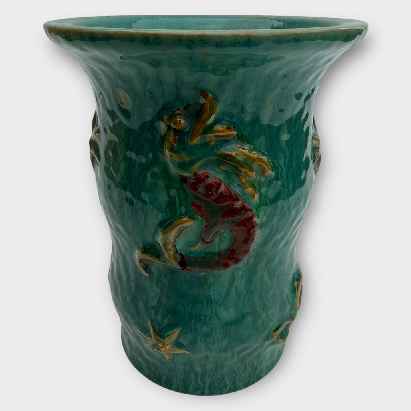 Bornholm ceramics, Michael Andersen, Older vase in greenish color decorated with sea animals, Marked on the bottom possibly with 3031, Height 16 cm, diameter 12 cm, nice condition.