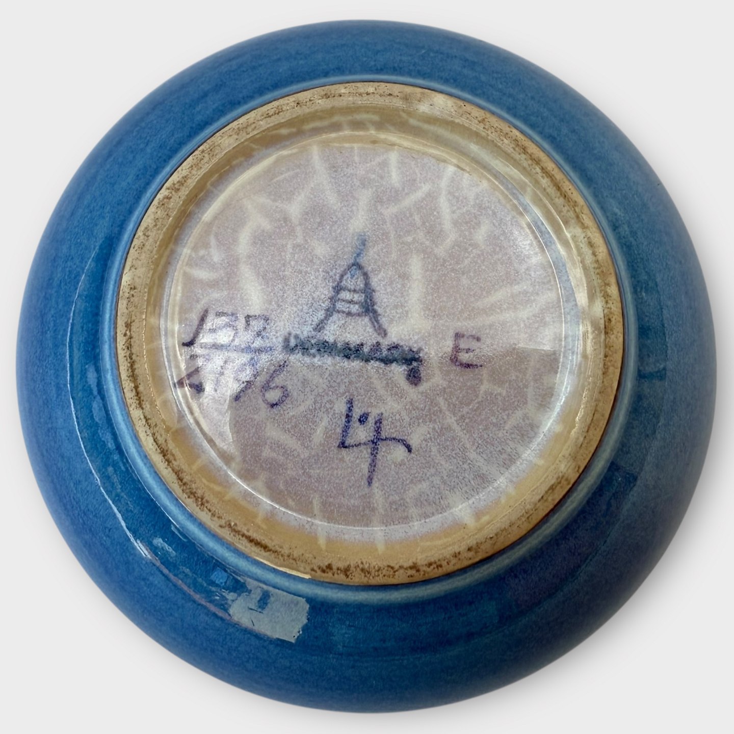 Aluminia, bowl, #137/2196, design Inge-Lise Koefoed, diameter 11cm, The bowl has a pinkish sheen and faint cracks under the glaze.