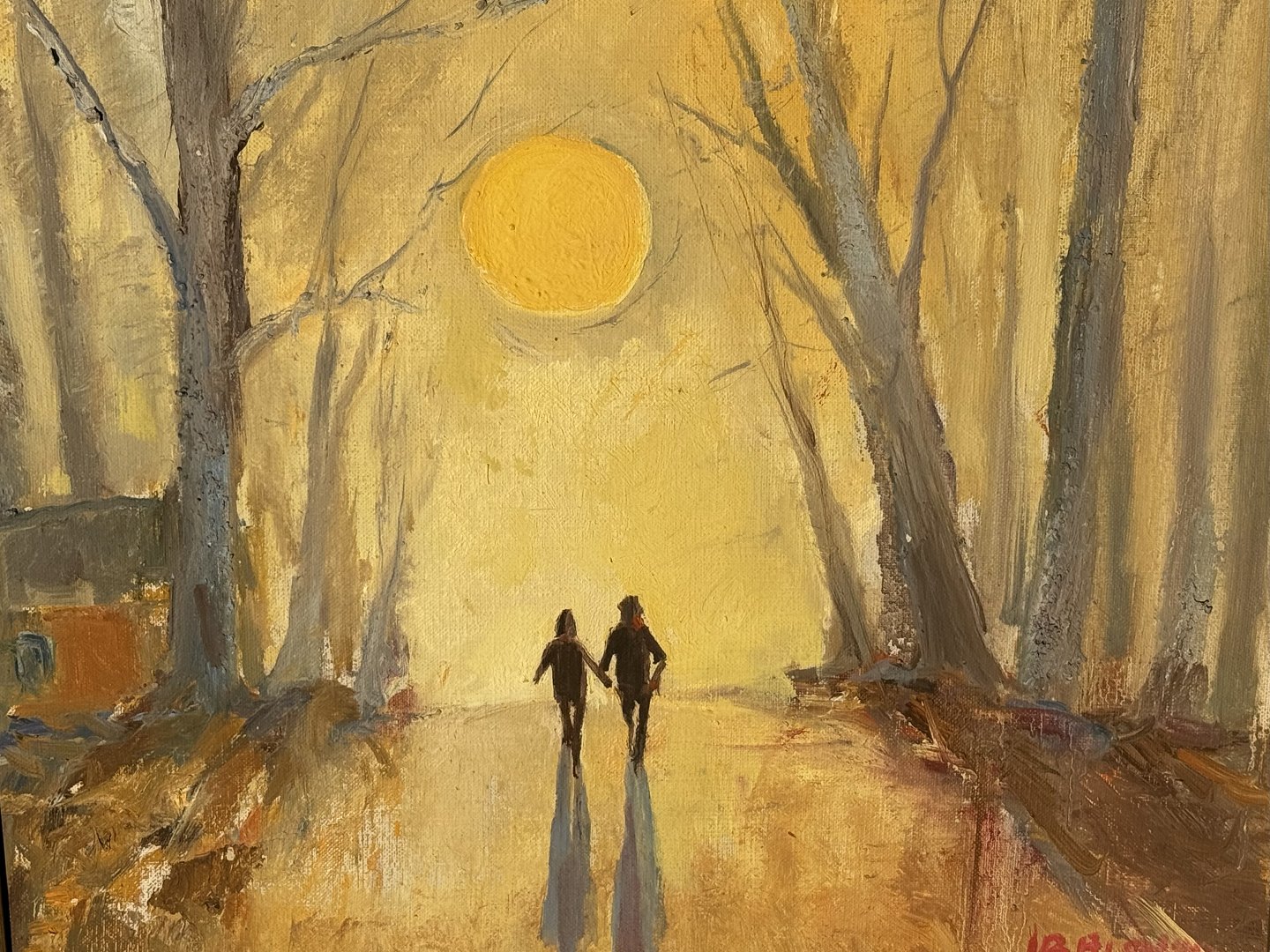 Ib Eisner, The Boys in the Deer Park Winter Sun, Oil painting on canvas, 40x34cm without frame, 59x53cm with frame *Good condition*