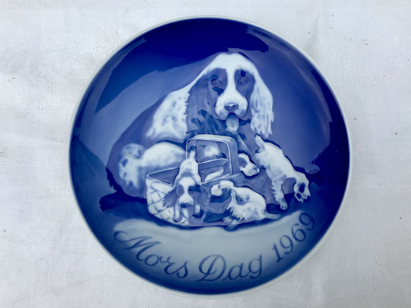 Bing & Gröndahl, Muttertagsplatte, 1969, Cocker Spaniel mit Welpen, 18cm Durchmesser, Design Henry Thelander * Guter Zustand *