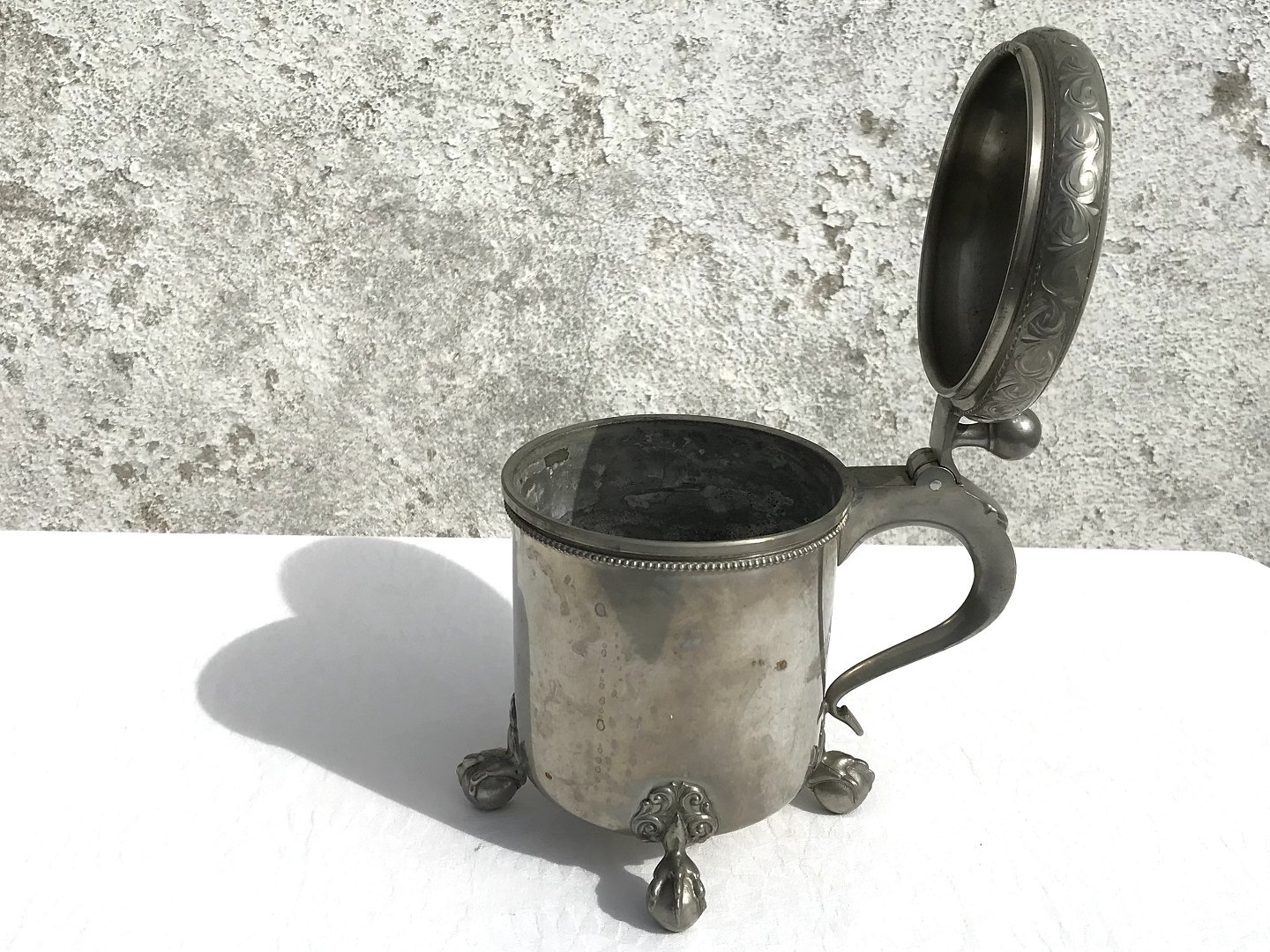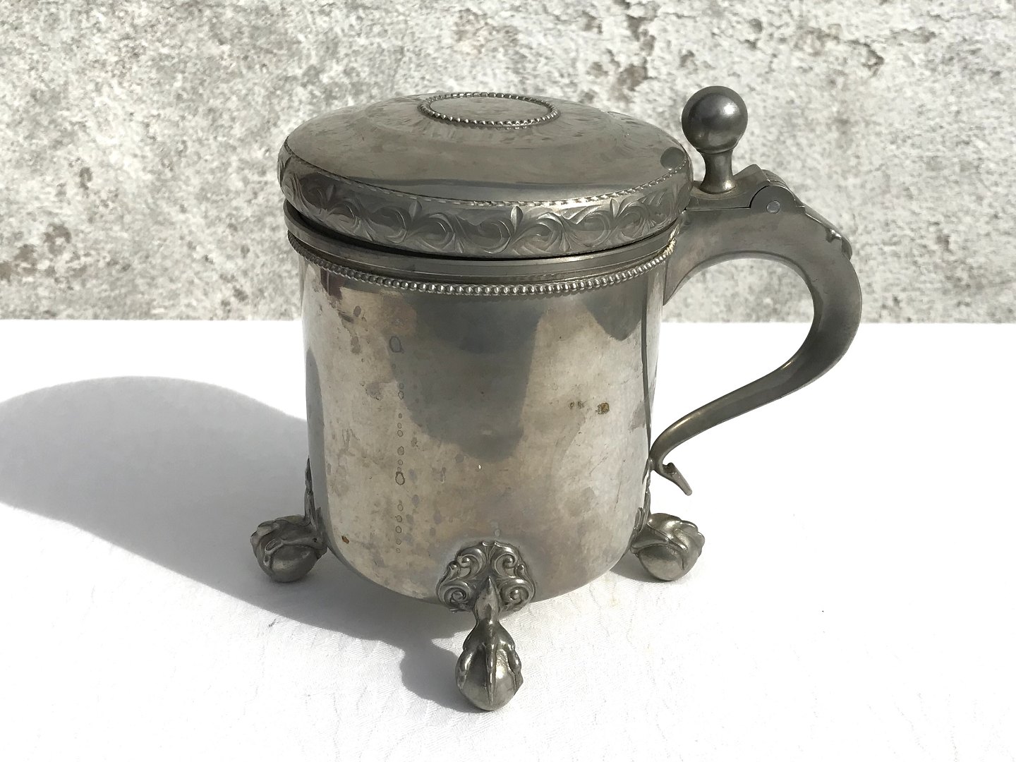 Norwegischer Blechbecher 507/4, Stop, Trophäe, Trinkbecher, Zinn Norwegen 14 cm hoch, 10,5 cm Durchmesser