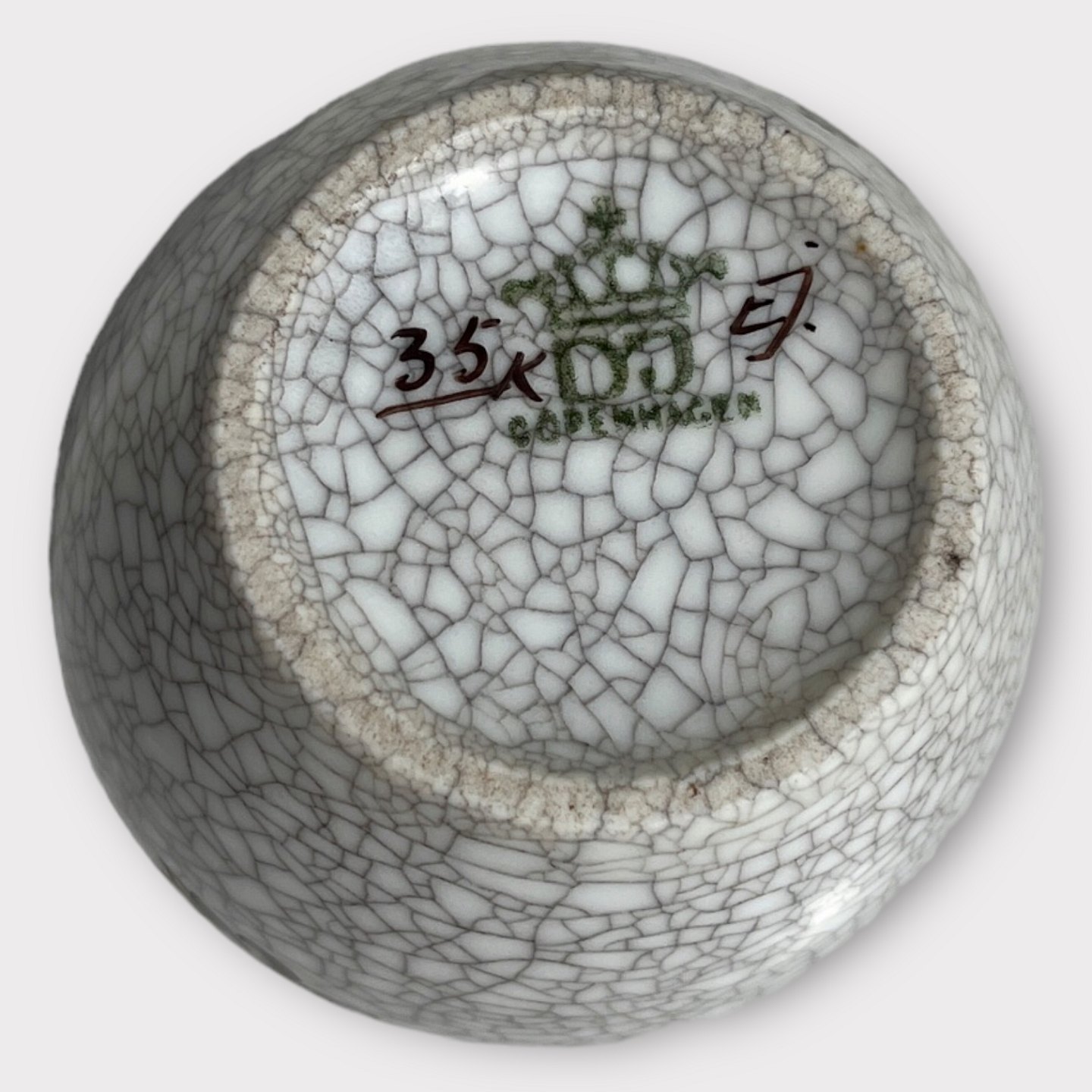 Dahl Jensen, Krakelé, Vase mit Blumenmotiv, 8 cm hoch, 7,5 cm Durchmesser *Mit Gebrauchsspuren am Goldrand*