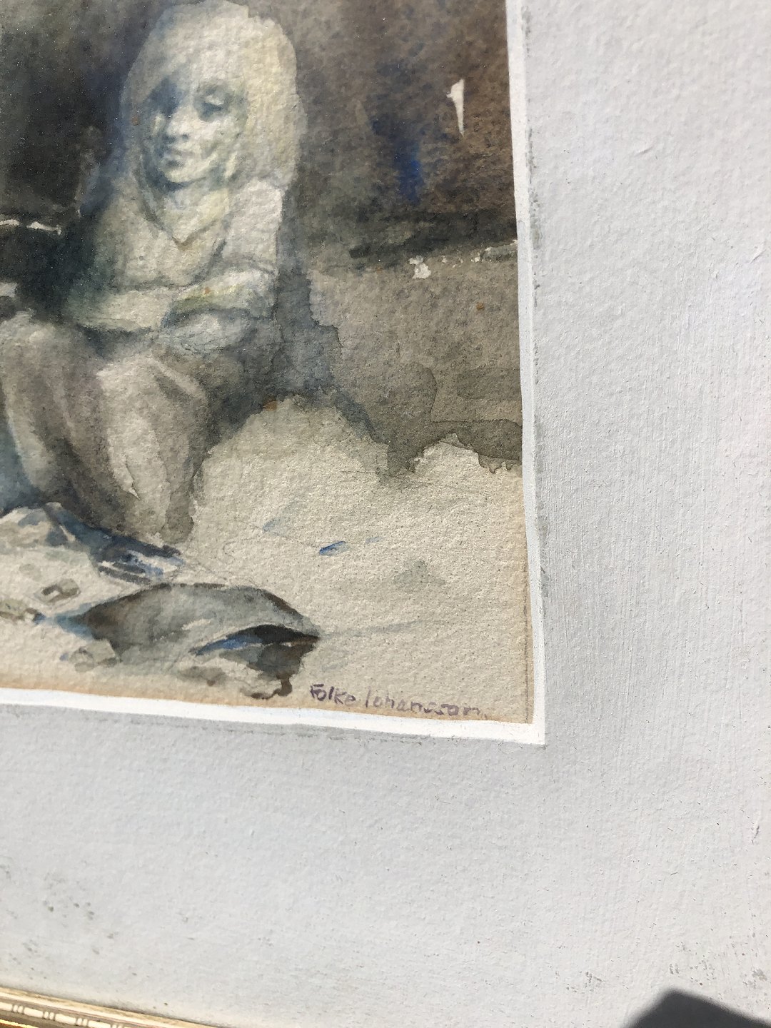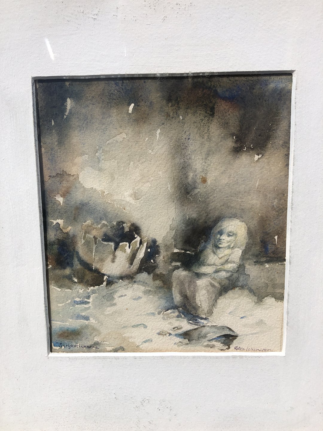 Johansson, Folke (1912-1980), „Strykstickarna“, Aquarell in gutem Zustand, aber mit einigen Schatten/Verfärbungen auf dem Passepartoutrahmen (siehe Foto). Maße mit Rahmen: 37,5X41,5 CM