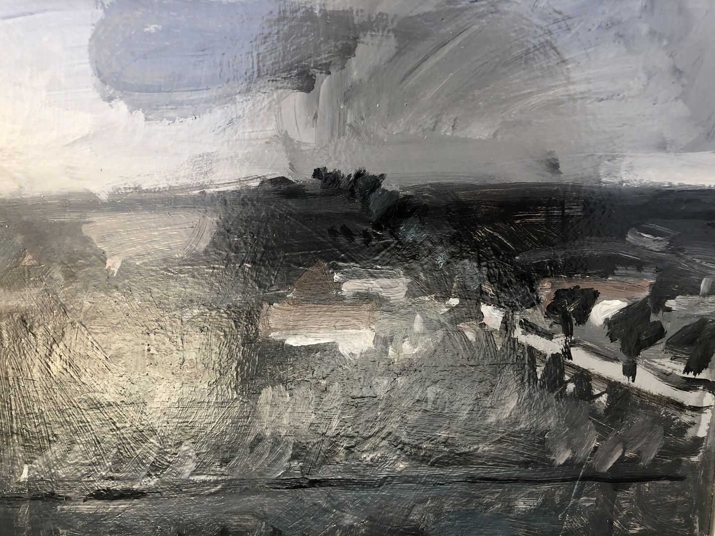 Arne Bødker (1911-1999), Ölgemälde auf Holz, dunkles Landschaftsmotiv, signiert AB und auf der Rückseite mit Cecil Bødkers Mann beschriftet, Maße mit Rahmen 39 x 31 cm