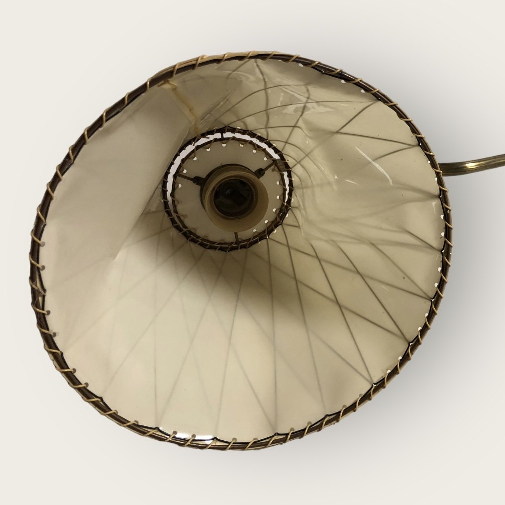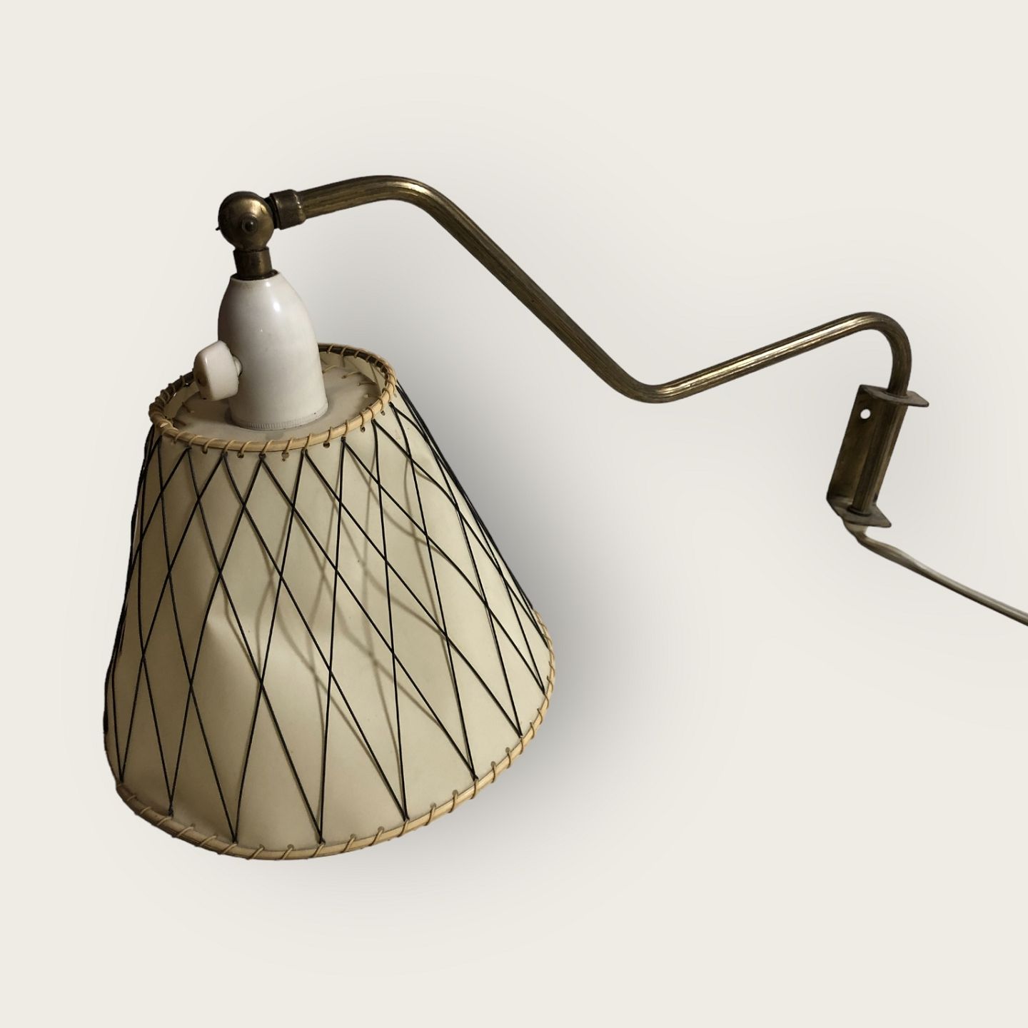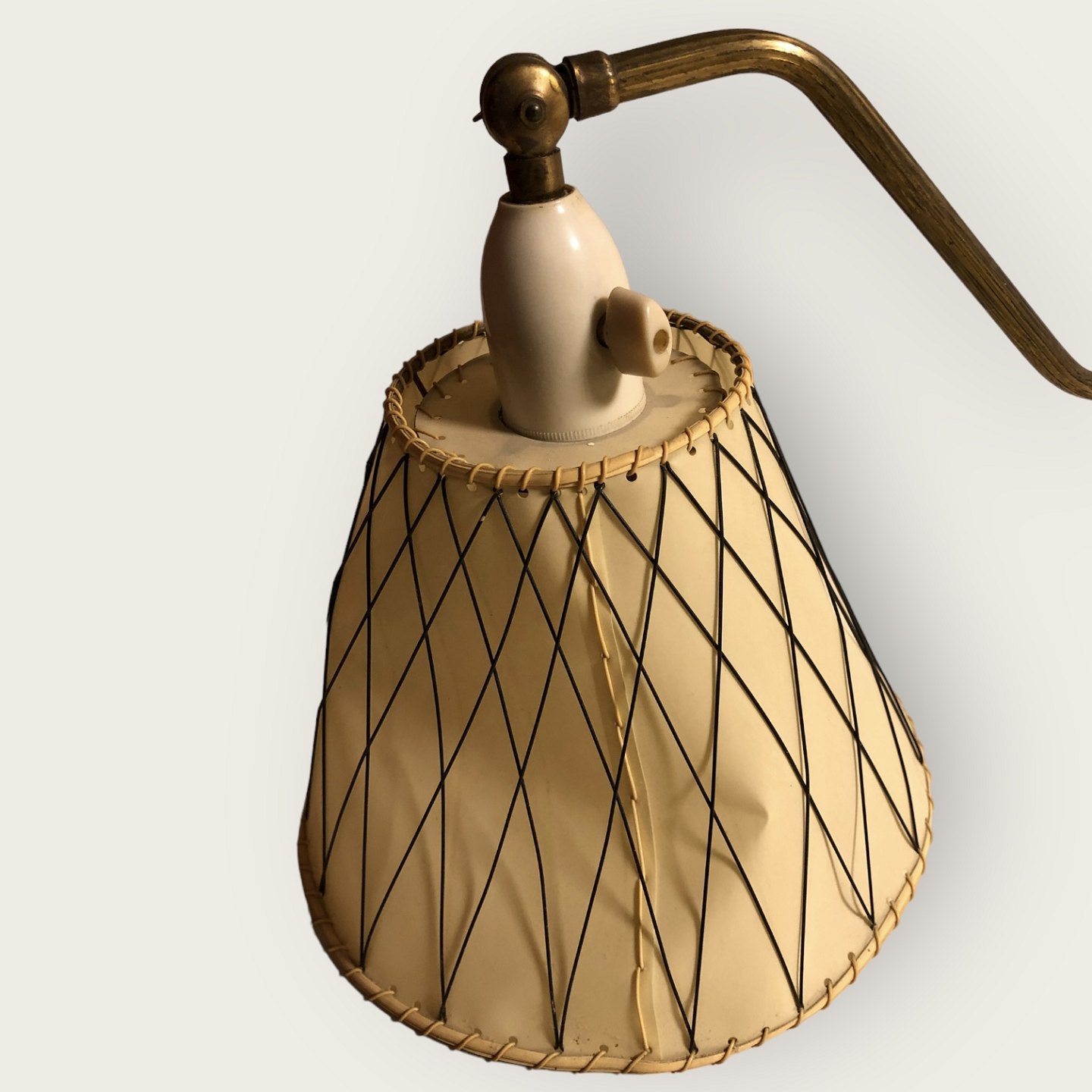 Lampe zur Wandmontage, aus den 1950er Jahren, voll funktionsfähig und in einwandfreiem Zustand, allerdings weist der Kunststoffschirm im Inneren einige Dellen auf (siehe Foto). Armlänge ca. 35 cm.