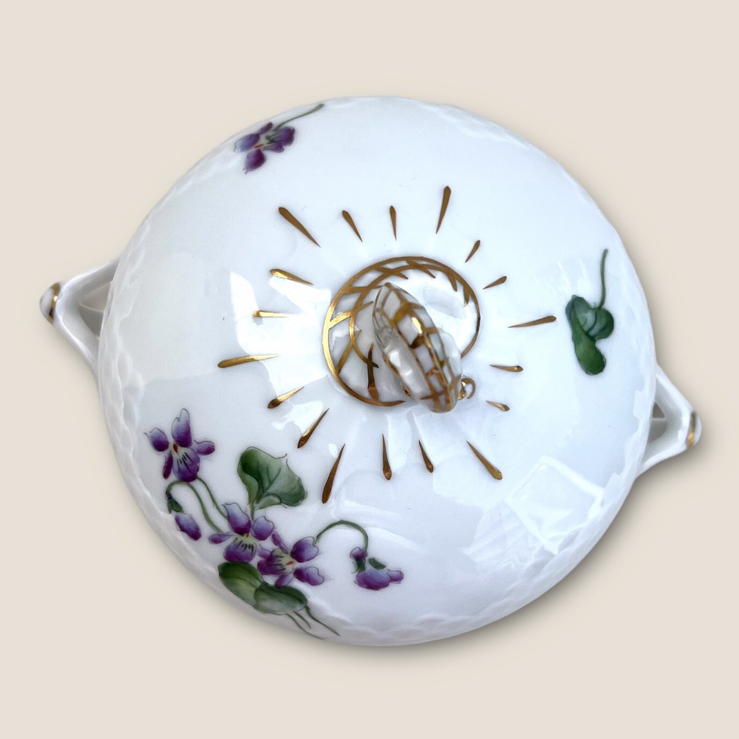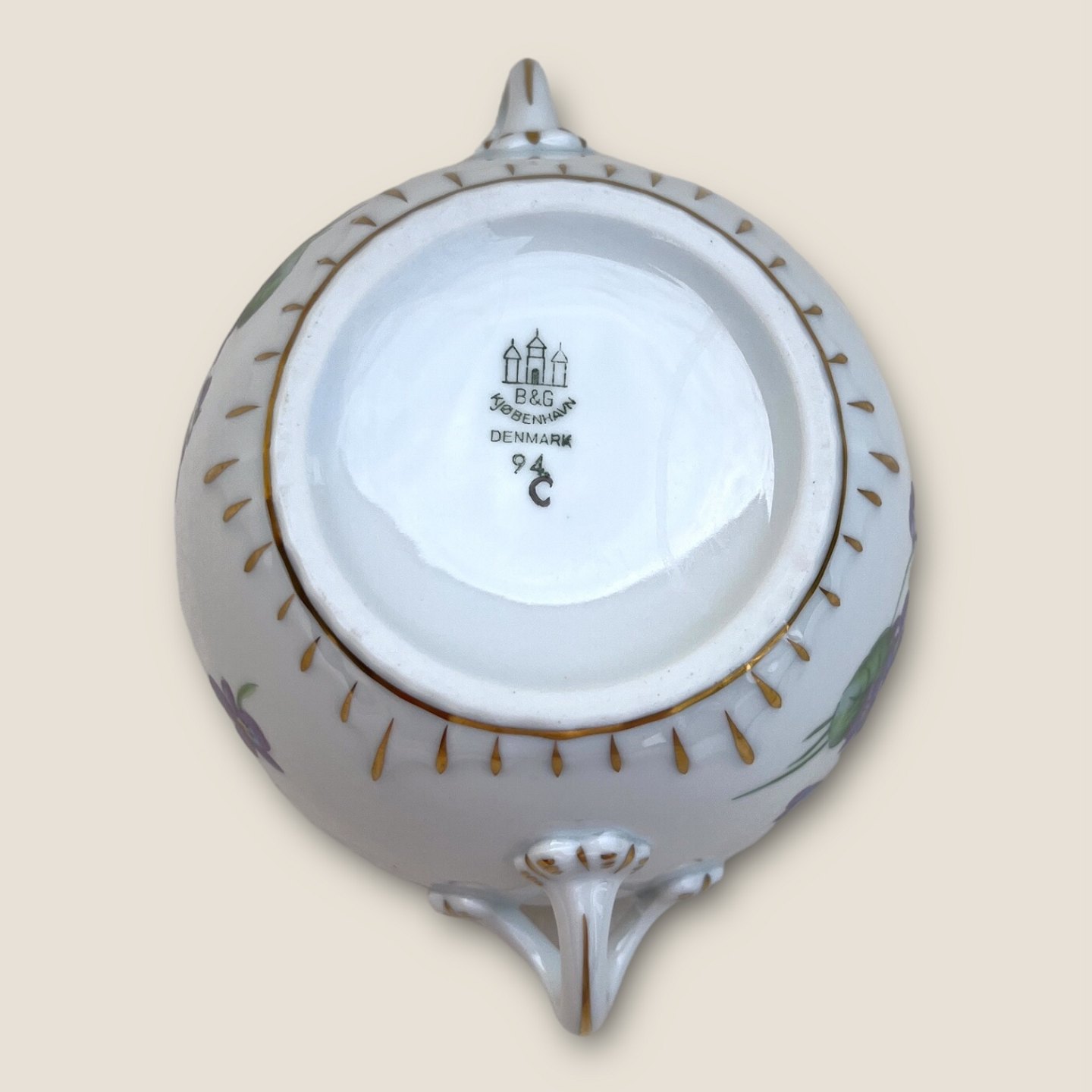 Bing & Grøndahl, Viol / Sumpf-Veilchen, Zuckerdose Nr. 94, 11 cm Durchmesser, 11,5 cm hoch *Schöner Ständer*