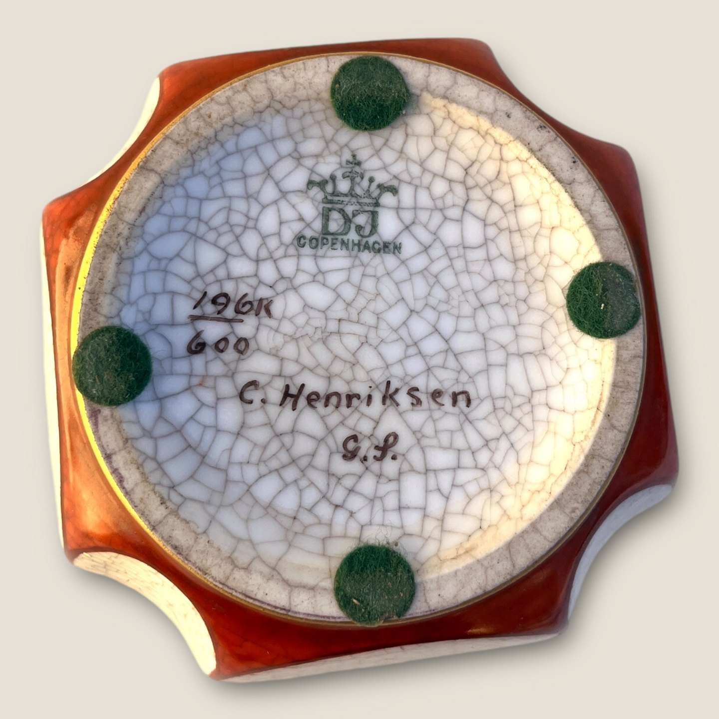Dahl Jensen, Krakelé, Dose mit Deckel mit Muster Nr. 196/600, 18 cm hoch, 11 cm / 11 cm *Guter Zustand*