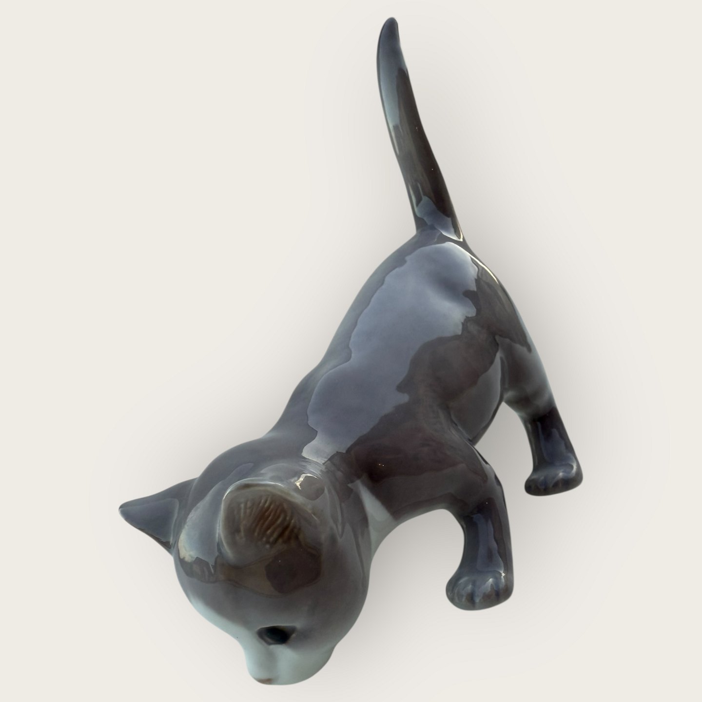 Bing & Grondahl, Graue Katze mit erhobenem Schwanz, Nr. 2517, 1. Wahl, Maße ca. 12 x 13 x 6 cm *Guter Zustand*