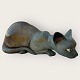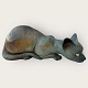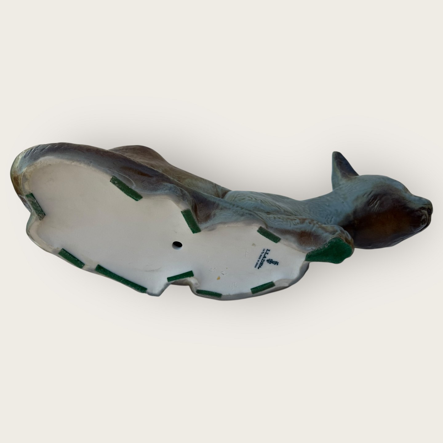 Large Lladro figurine, Spain, Lying cat in brown / Green glaze, 41cm long *Good condition*
