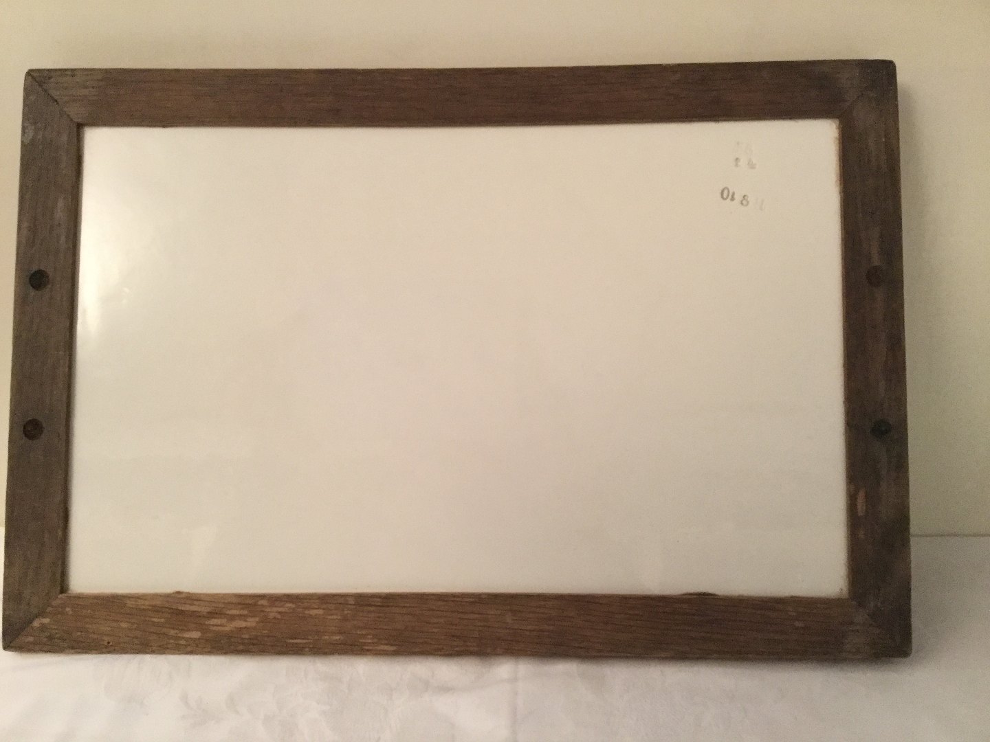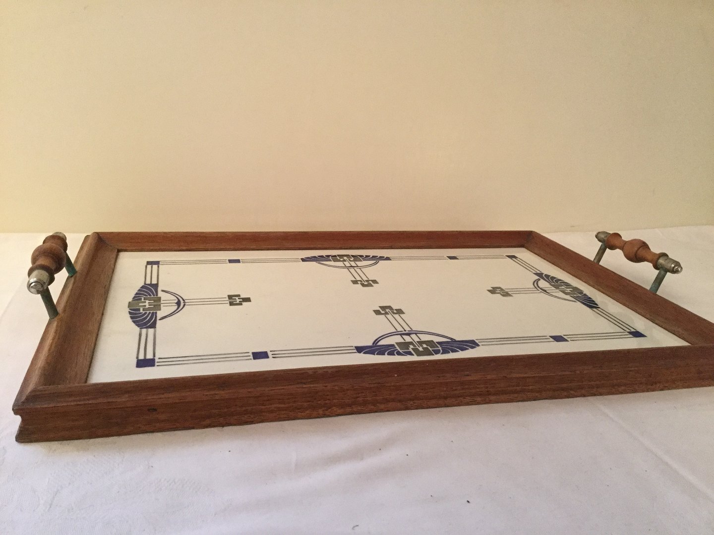 Porcelæns bakke med egetræsramme og træhåndtag. 43x28 cm. Fin stand. Antagelig fra Tyskland.