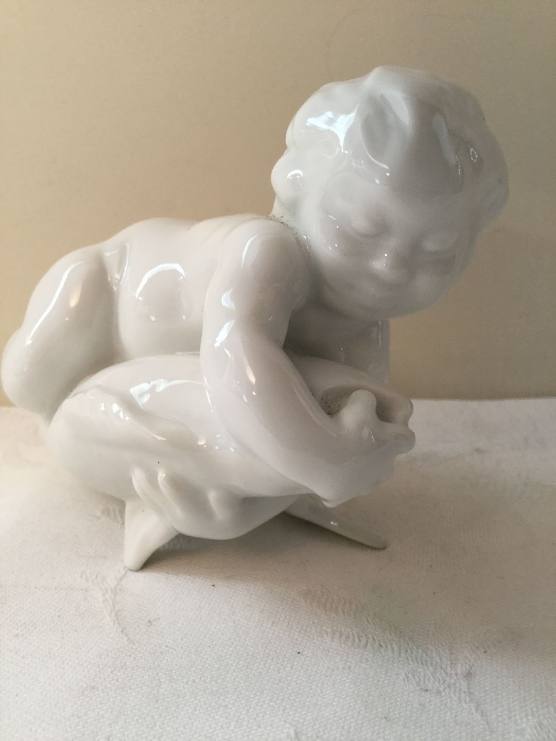 Bing og Grøndahl, Barn på delfin #34 #4034, 9cm høj, 1.Sortering, Design Kai Nielsen *Perfekt stand*