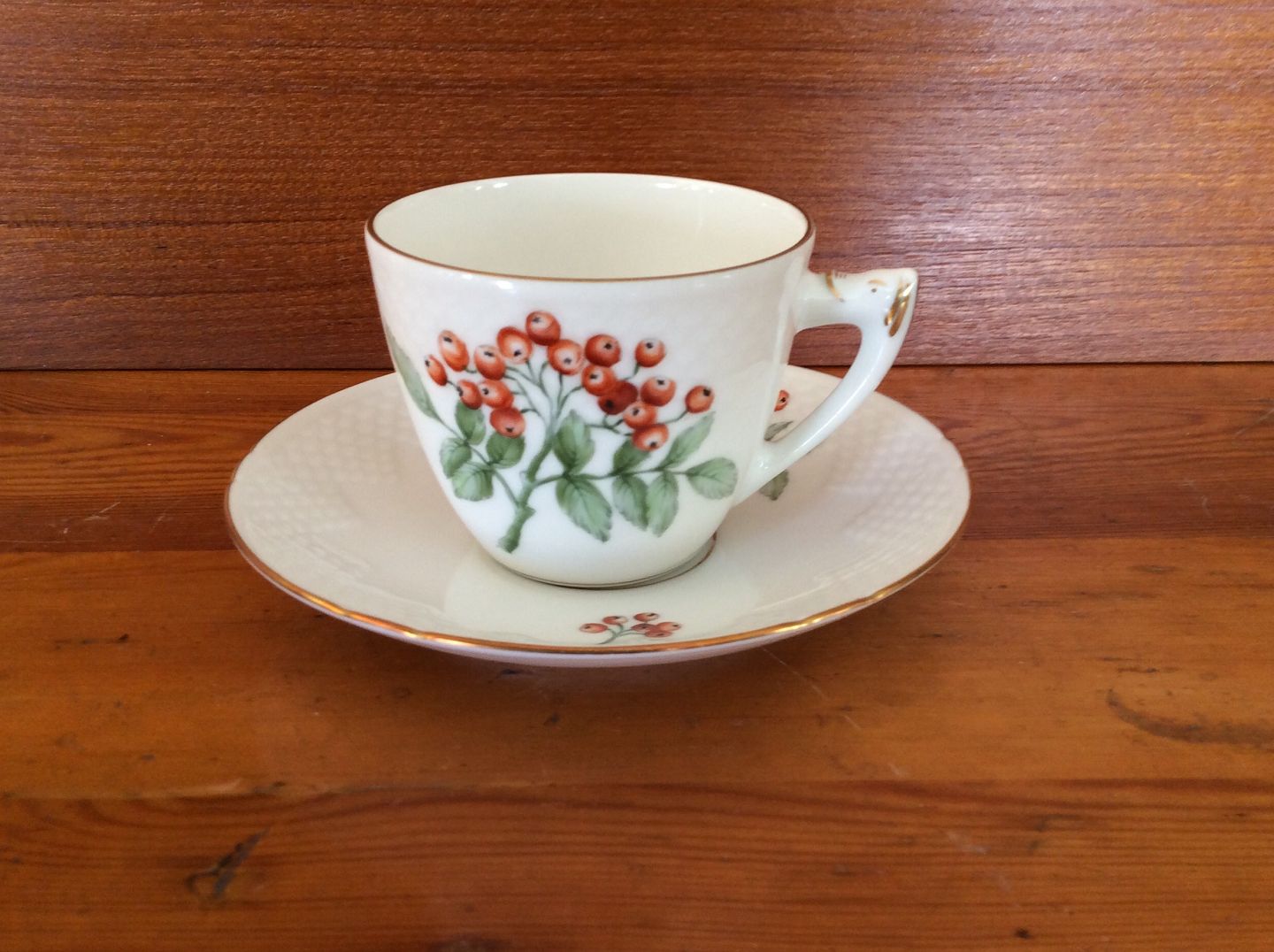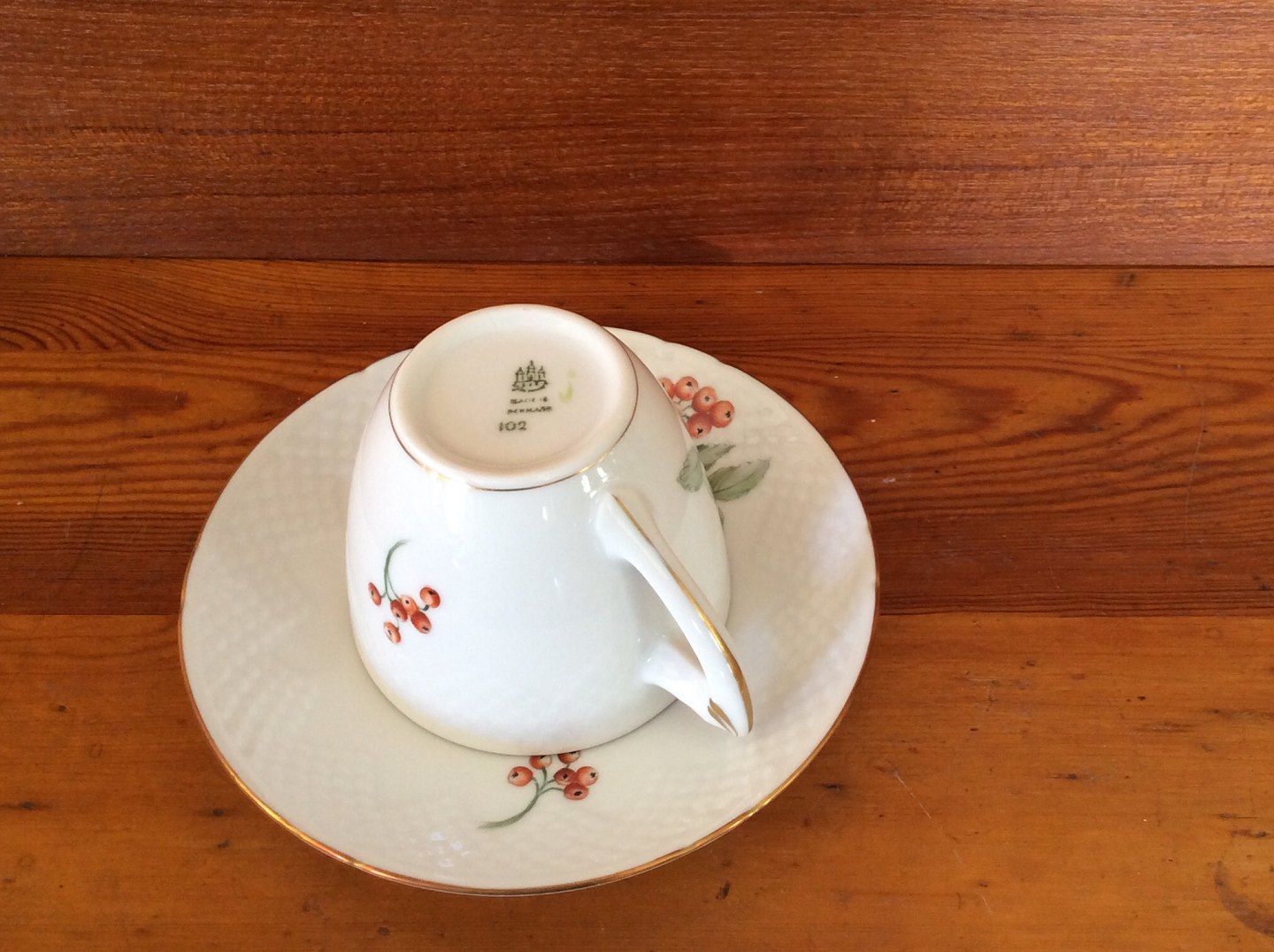 Bing & Grøndahl, Rønnebær, hand-painted coffee cup and saucer # 102, 7.5cm in diameter, 6.5cm high, 1.Sorting *Perfect condition*