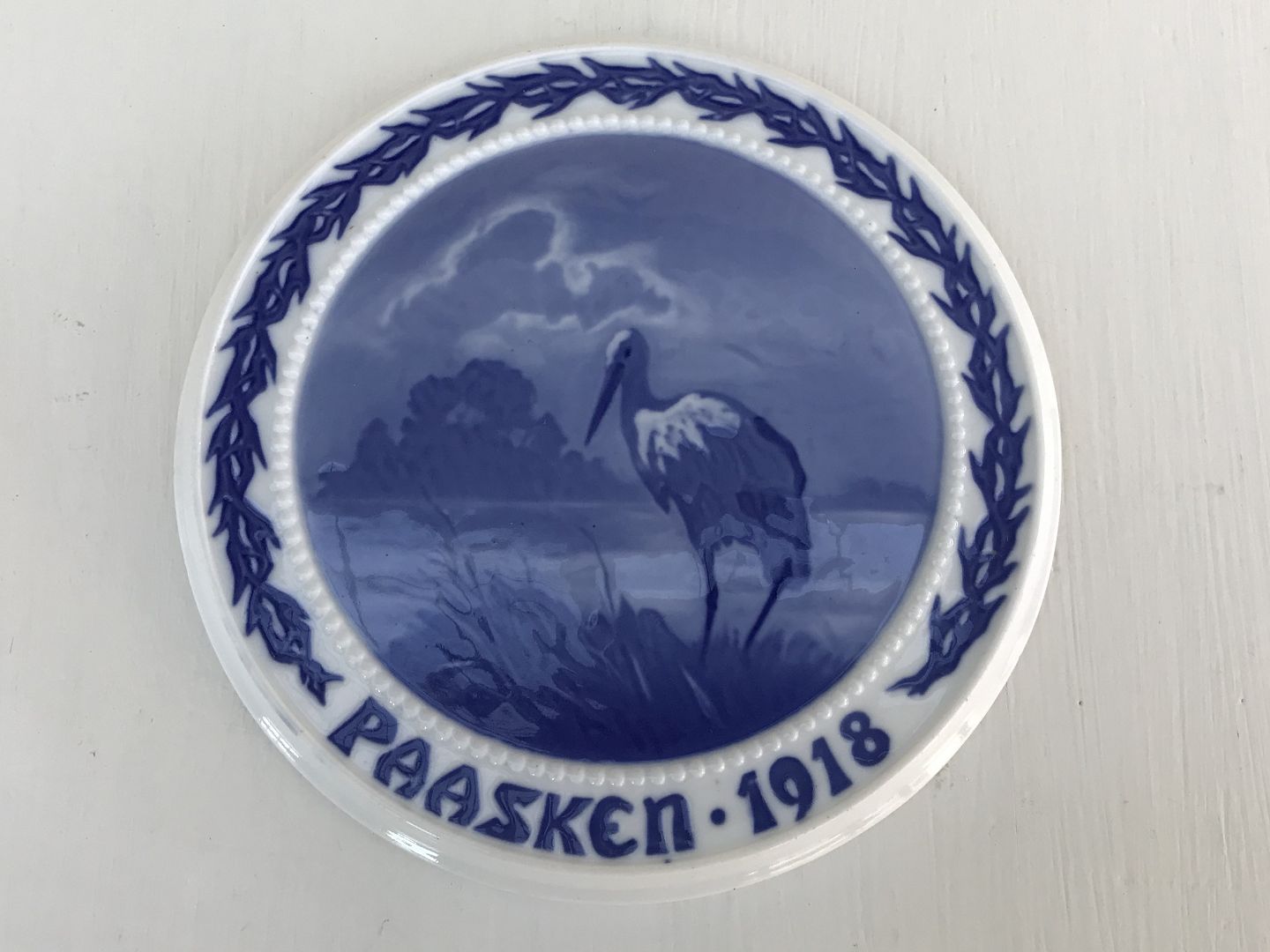 Bing & Grondahl, Easter plate, 1918, Stork, 19cm in diameter, Design Johannes Acton Friis * Perfect condition *