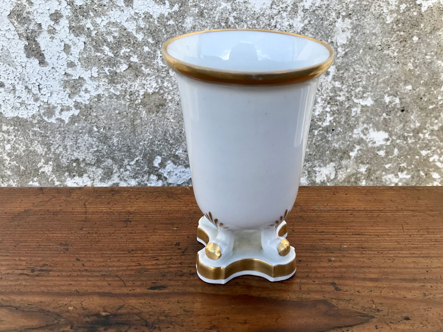Bing & Grøndahl, Gammel vase på fødder med guld dekoration #B&G, 13cm høj, 8,5cm i diameter *Pæn stand*