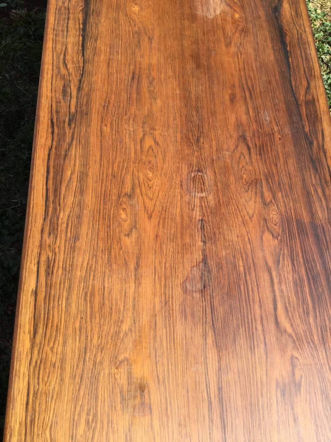 Sofabord i palisander fra 1960'erne. Danish modern. Fremstår med nogle mærker og ringe på bordplade. HxBxL 46x55x180 cm.