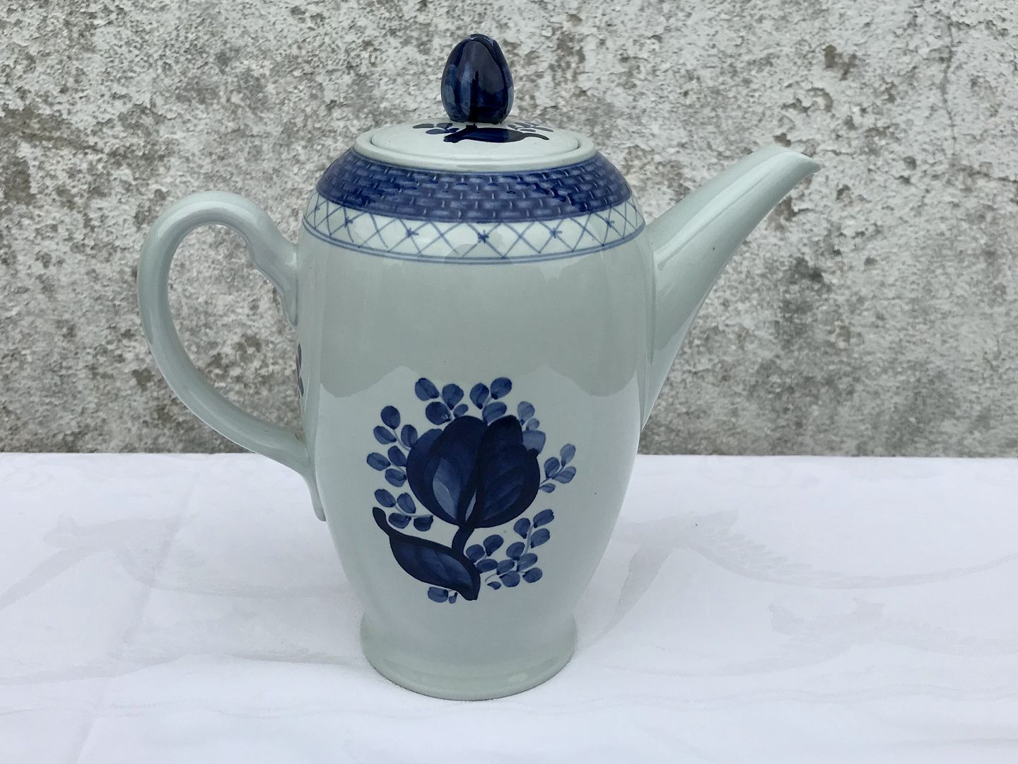 Royal Copenhagen, Aluminia, Trankebar, Coffee pot #11/1105, 21cm high, 22cm wide, various grades, Design Christian Joachim *Good condition*