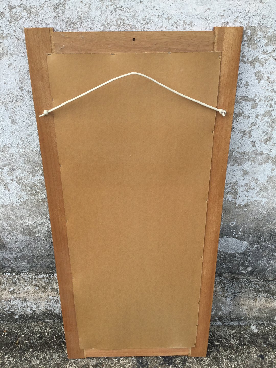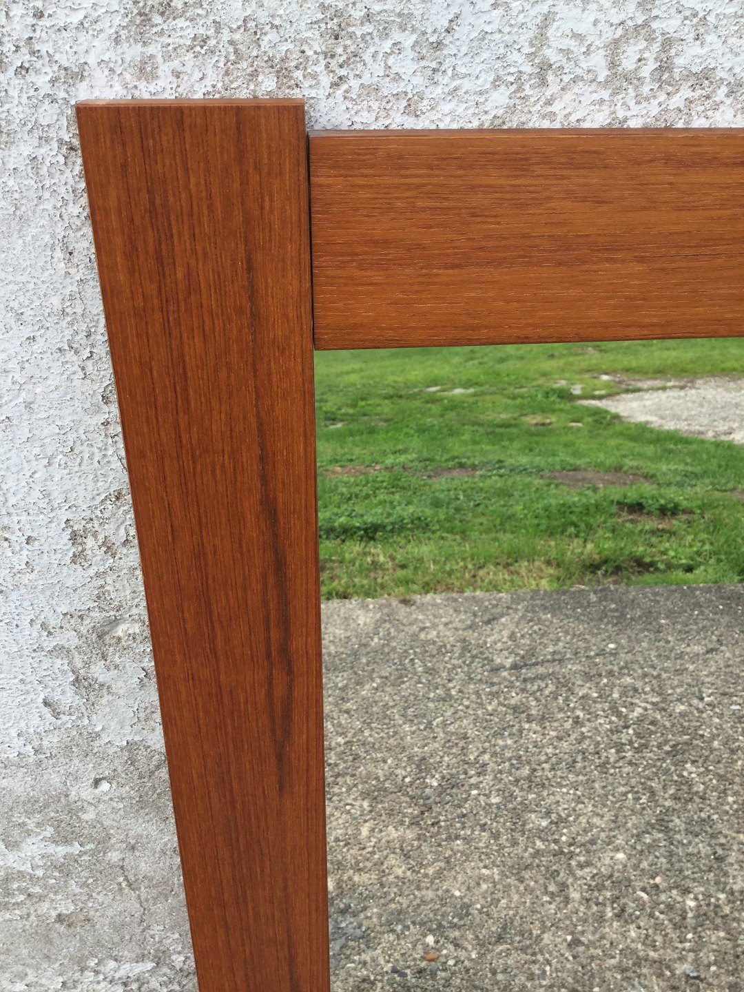 Spejl med bred ramme i teakfiner. Mål: 114x52,5 cm