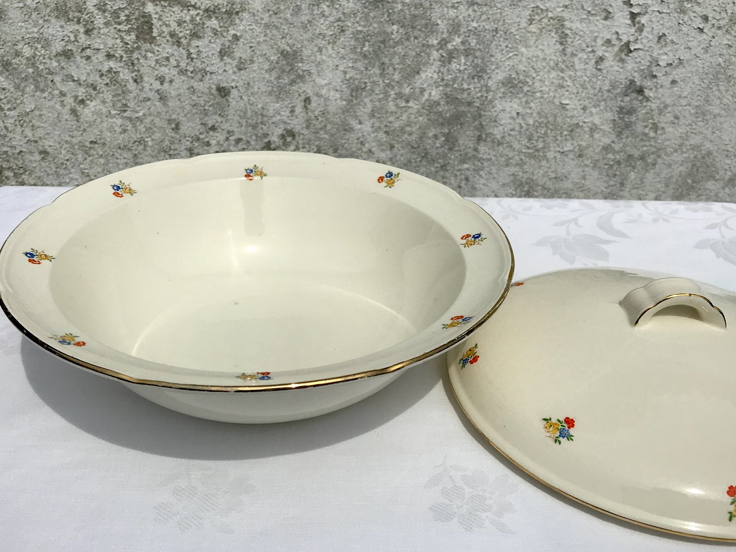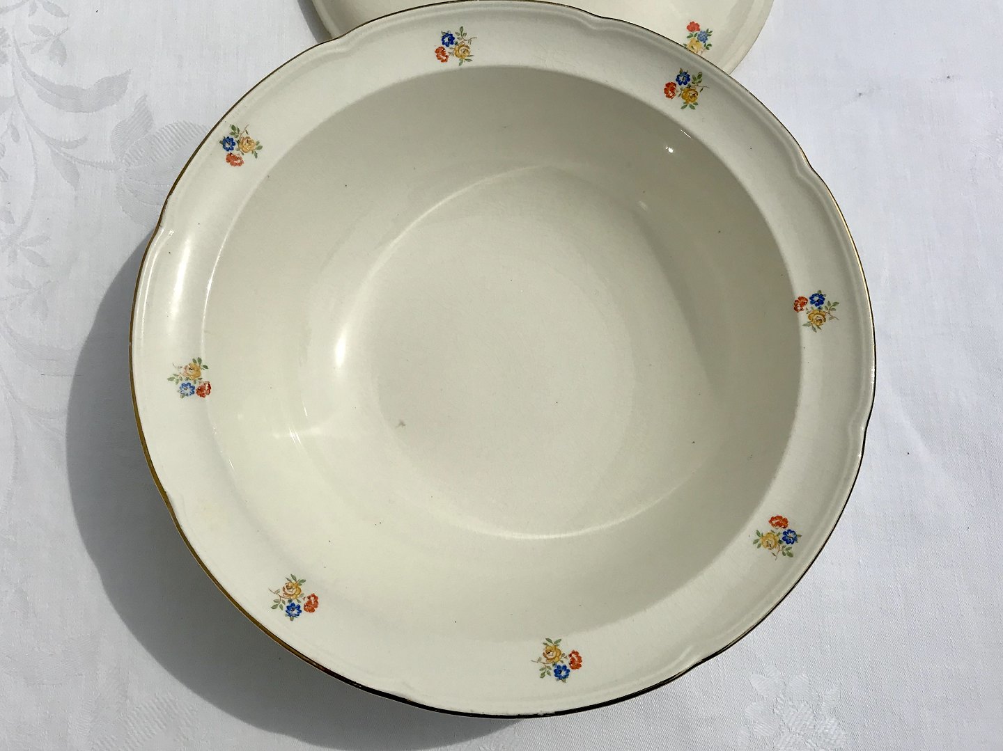 Royal Copenhagen, Aluminia, Alma stelform, Anna Sofie, Serveringsskål med låg, 25cm i diameter, Design Nils Thorsson *Pæn brugt stand med lidt krakeleringer* 4stk uden låg 75kr stk. *Pæn brugt stand*