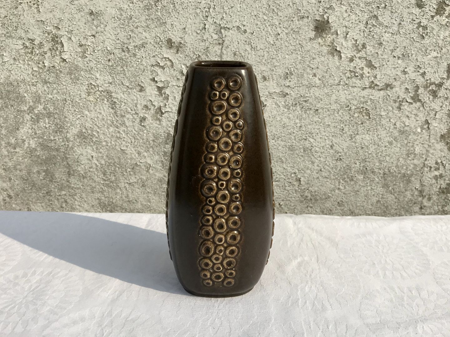 Keramik vase, Brun med cirkel dekoration, 18cm høj, Stemplet 545 ‘perfekt stand*