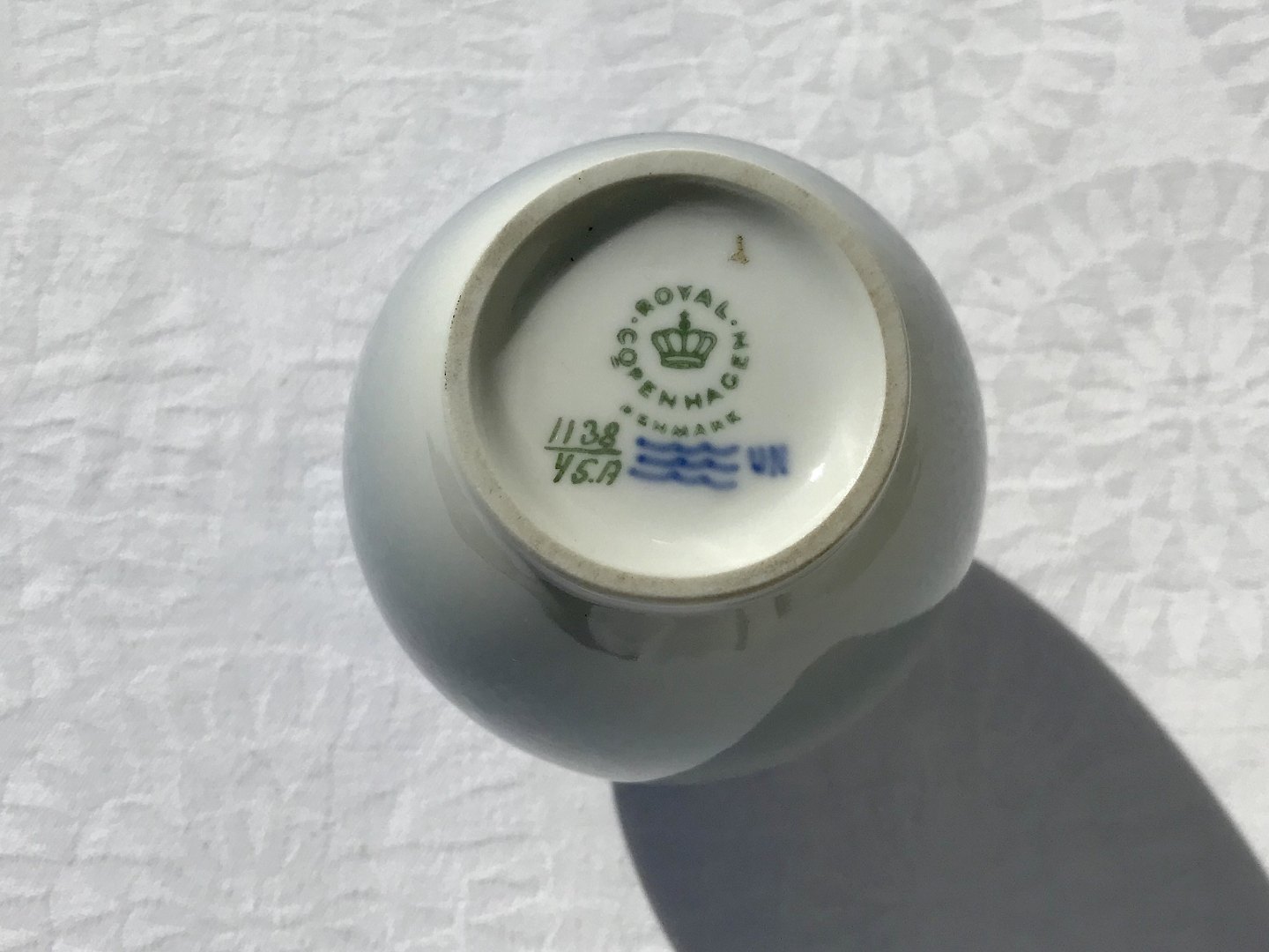 Royal Copenahagen, Vase #1138/45A, Måger på havet, 10cm høj, 1.Sortering *Perfekt stand*