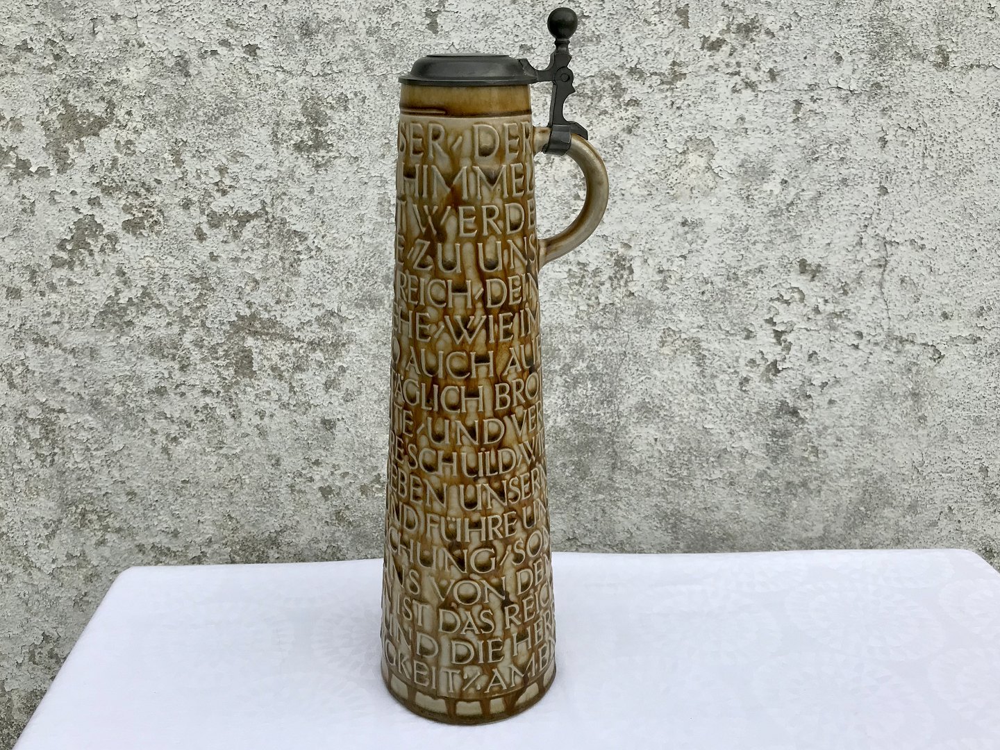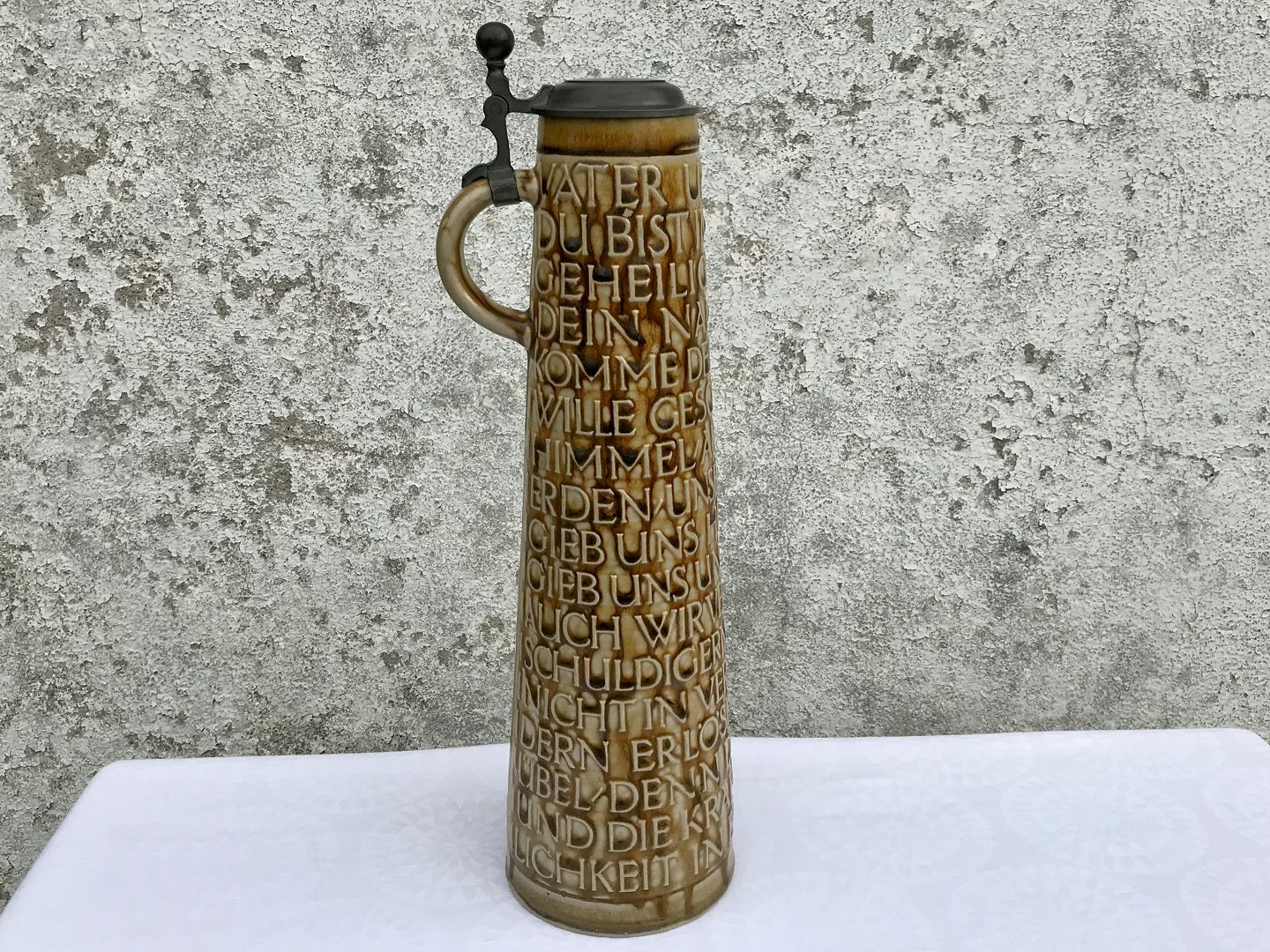 Merkelbach ølkrus med Fadervor indskrevet på tysk. Mærket West Germany. 36,5cm høj, 10cm i diameter (Bund) *Perfekt stand*