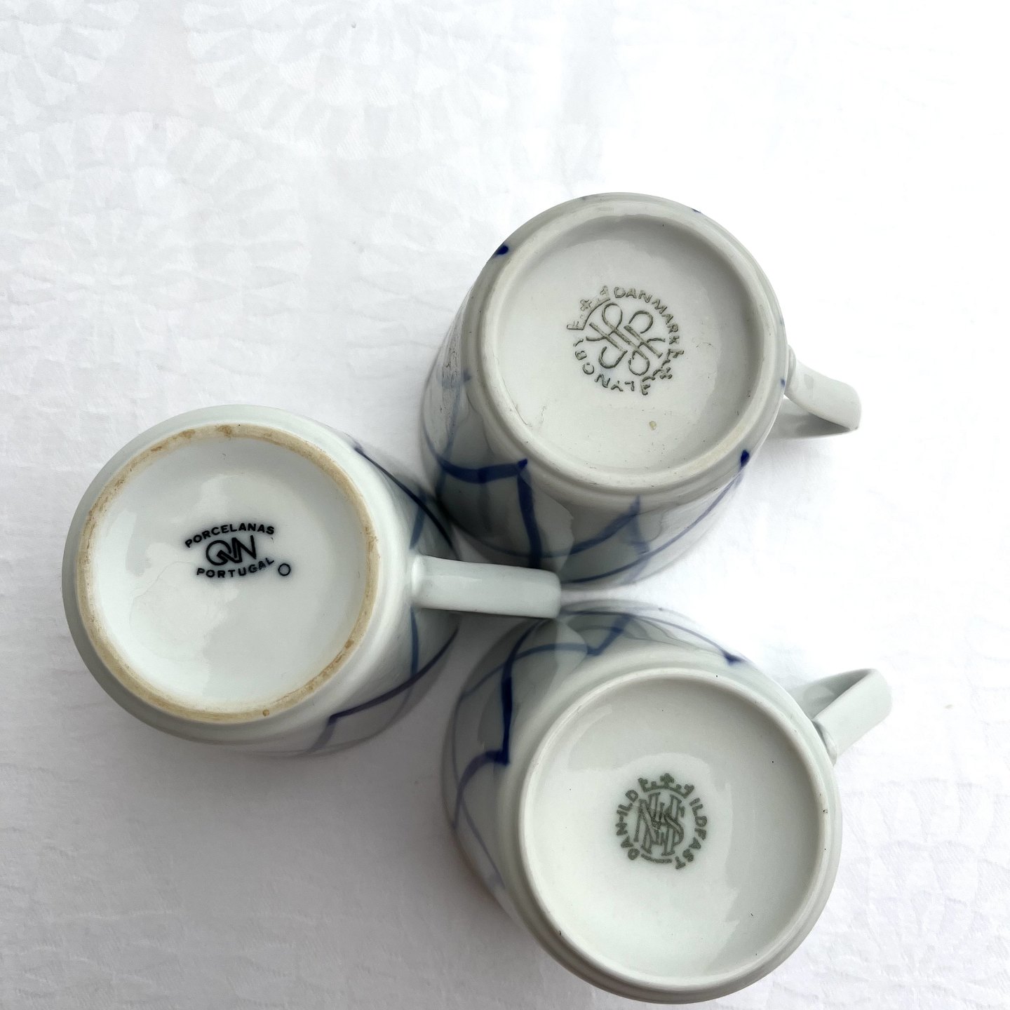 Lyngby, Danild 40, Harlekin, Blå flamme, Kaffesæt, 7cm høj, 7,5cm i diameter, 1. & 2.sortering *Pæn stand med forskellige stempler*