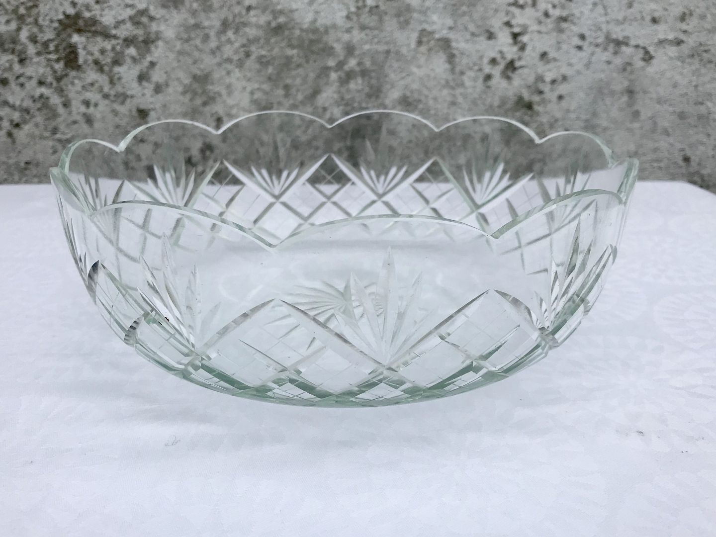 Krystal skål, med kryds og stjerne slibninger, 23cm i diameter, 8,5cm høj *Pæn med brugsspor under bunden*