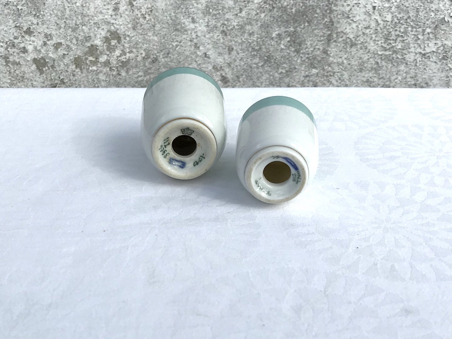 Royal Copenhagen, Dybbøl, Salt & Pepper Set # 882/9760, 882/9758, 6.5cm high, 6cm in diameter, Design Thorkild Olsen (kit sold without plug) * Nice condition *