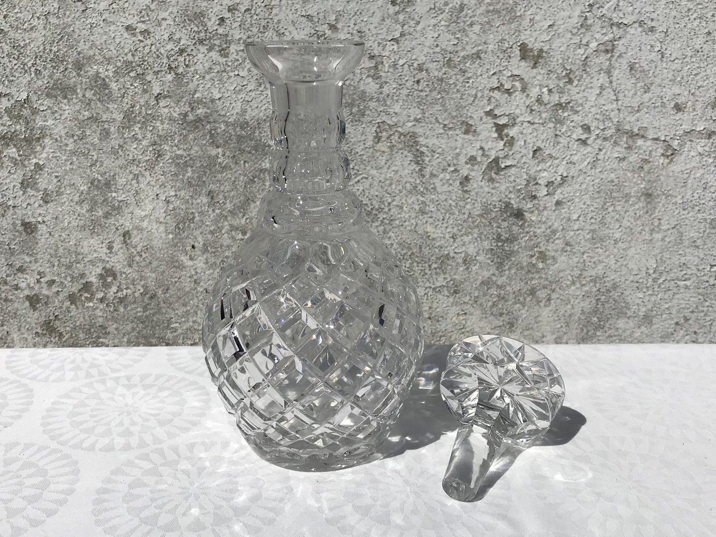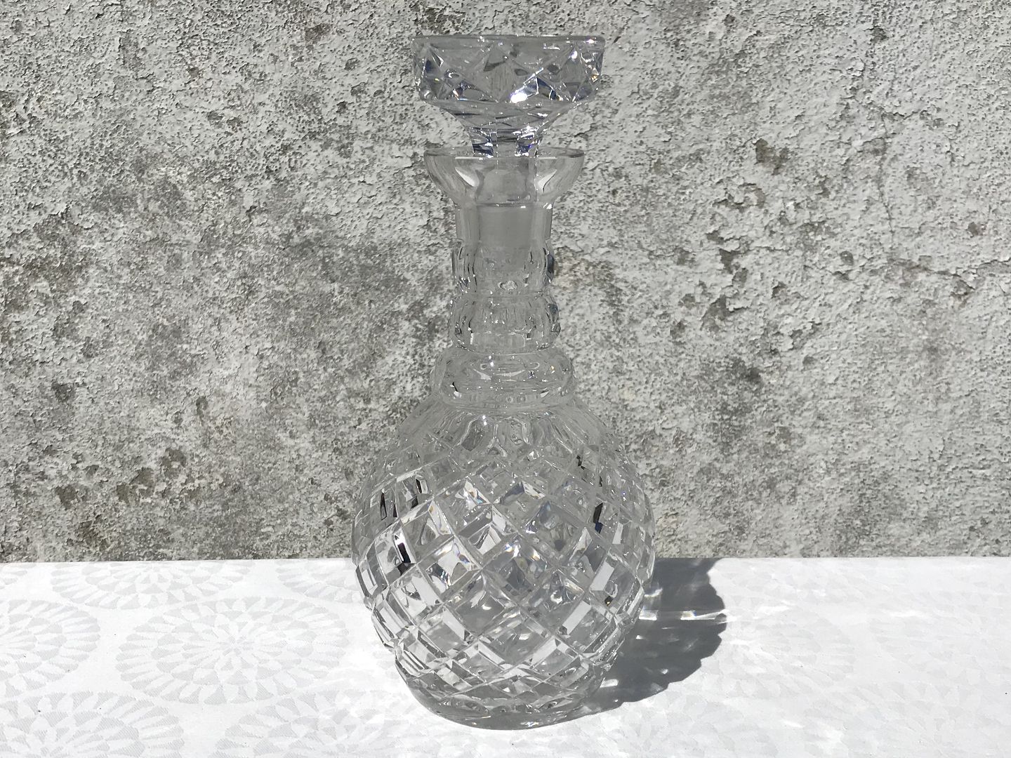 Krystal karaffel, Med slebene tern, 23cm høj *Pæn stand dog med lille hak i proppen*