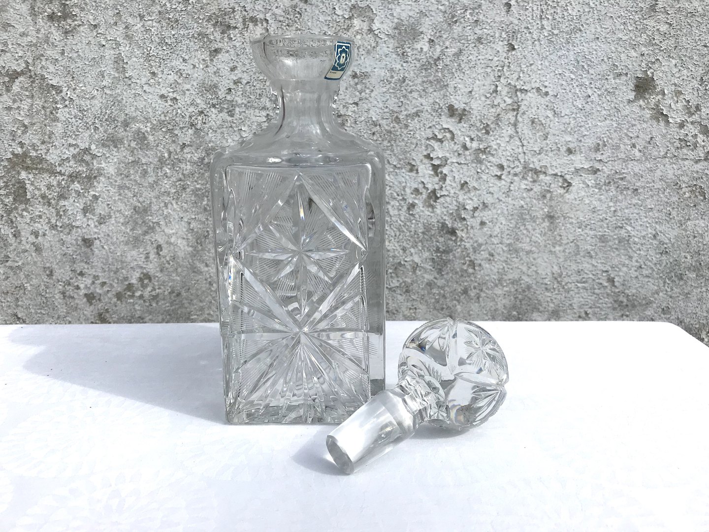 Whiskey crystal carafe, With star grinding, 24.5cm high, 9cm wide * Nice condition *
