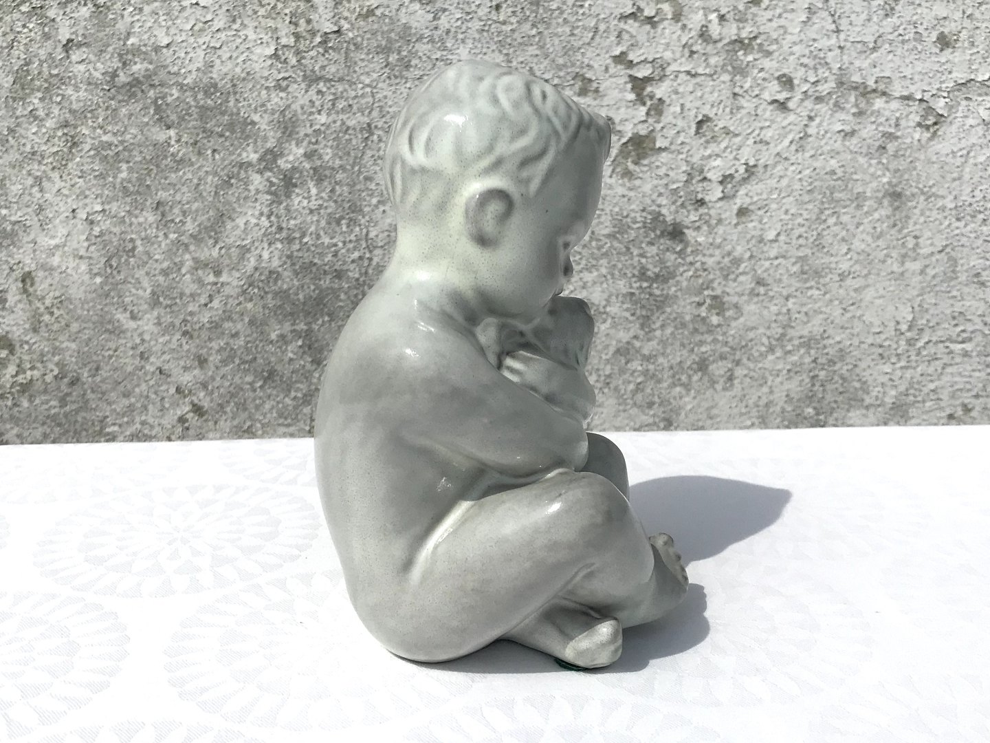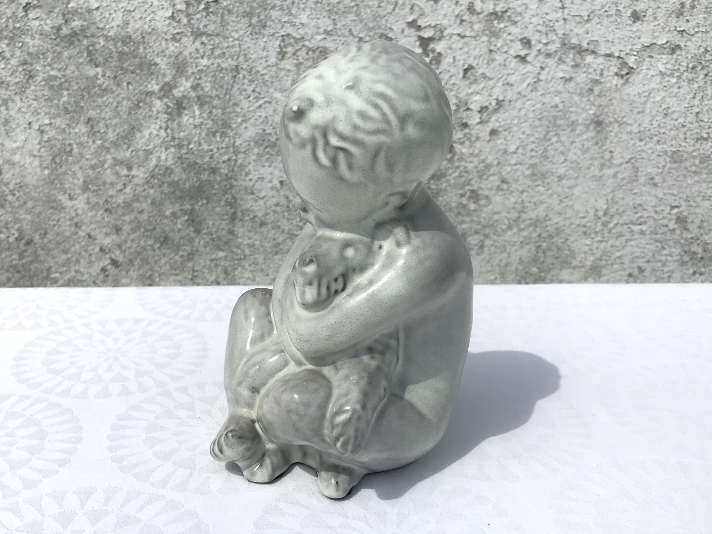 Bornholmsk keramik, Michael Andersen, Dreng med hund, 4741, 15cm høj *Pæn stand*