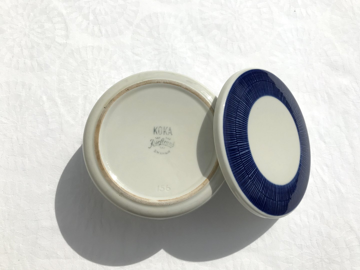 Rørstrand, Blå koka, Smørskål #156, 13cm i diameter, 7,5cm høj, Design Hertha Bengtsson *Pæn stand*