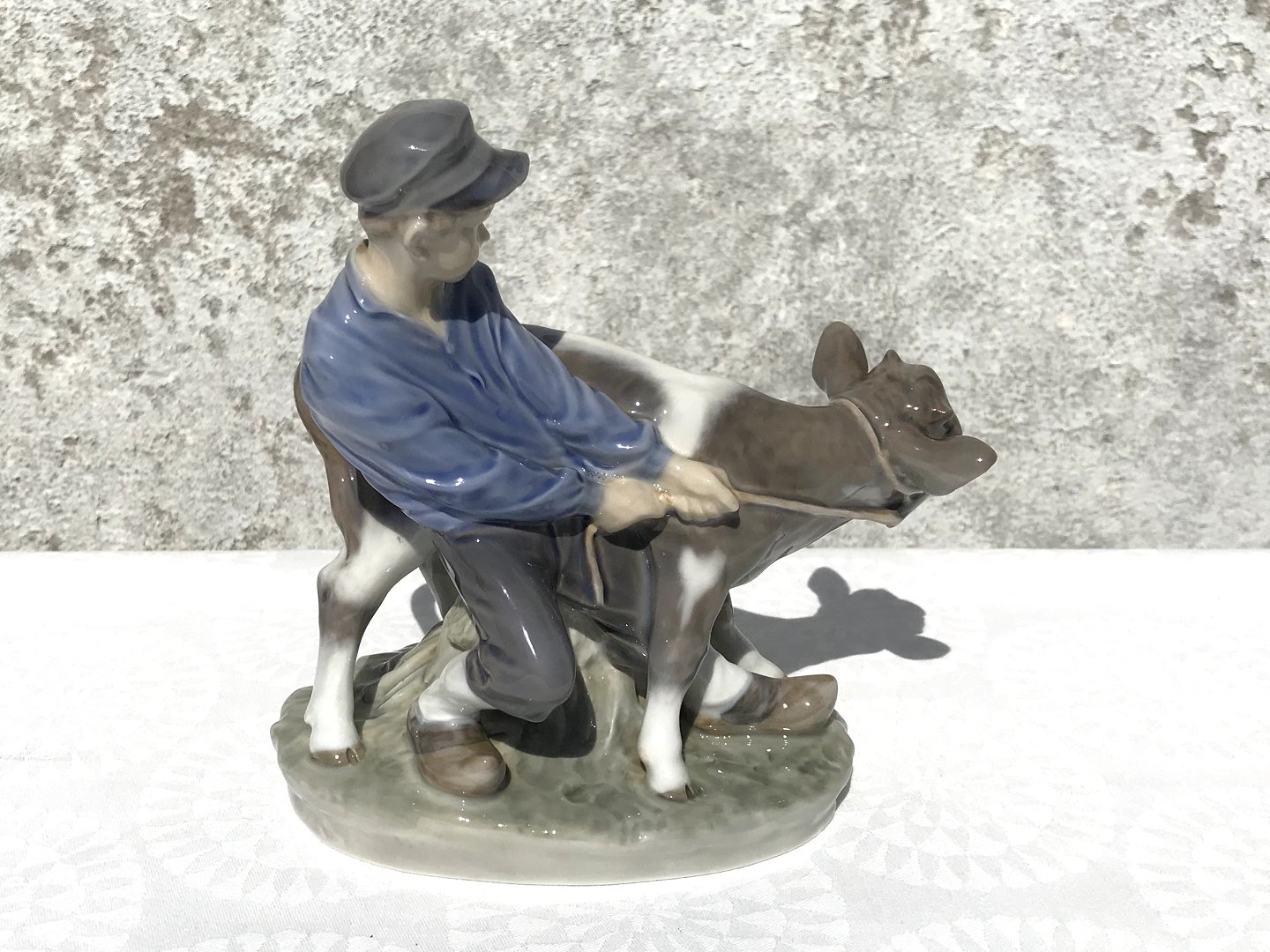 Royal Copenhagen, Dreng med kalv #772, 16cm høj, 16cm bred, 1.sortering, Design Chr. Thomsen *Perfekt stand*