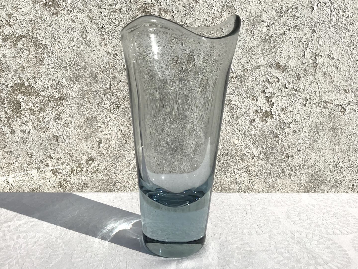 Holmegaard, Vase med asymmetrisk kant, Akva farvet, 24,5cm høj, 12cm i diameter, Design Per Lütken *Pæn stand*