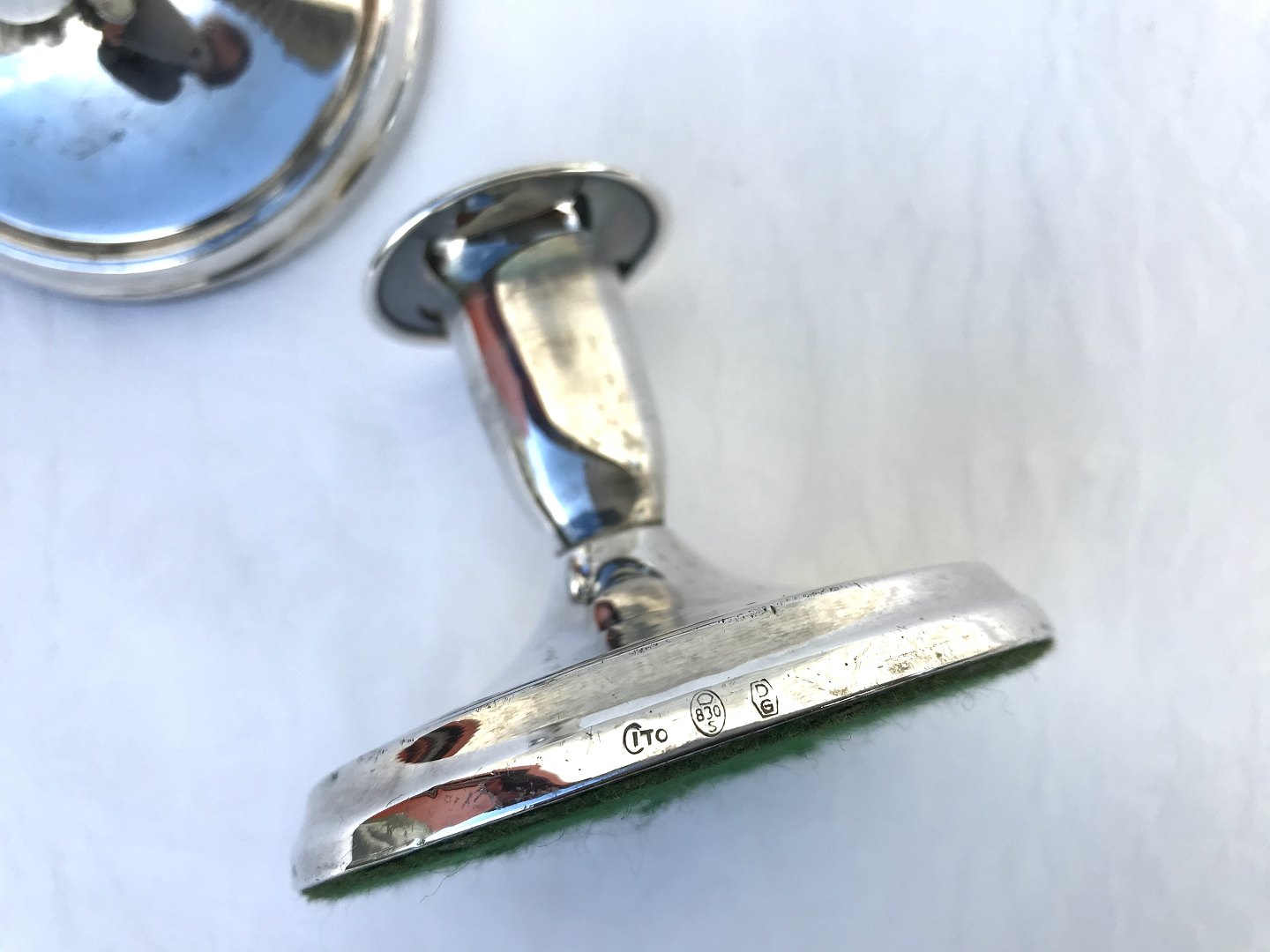 Sølv, 830 S, Stemplet Cito for sølvsmed V. Petersen - Fredericia. Lysestager, 8cm i diameter, 7cm høj, *Med brugsmærker*