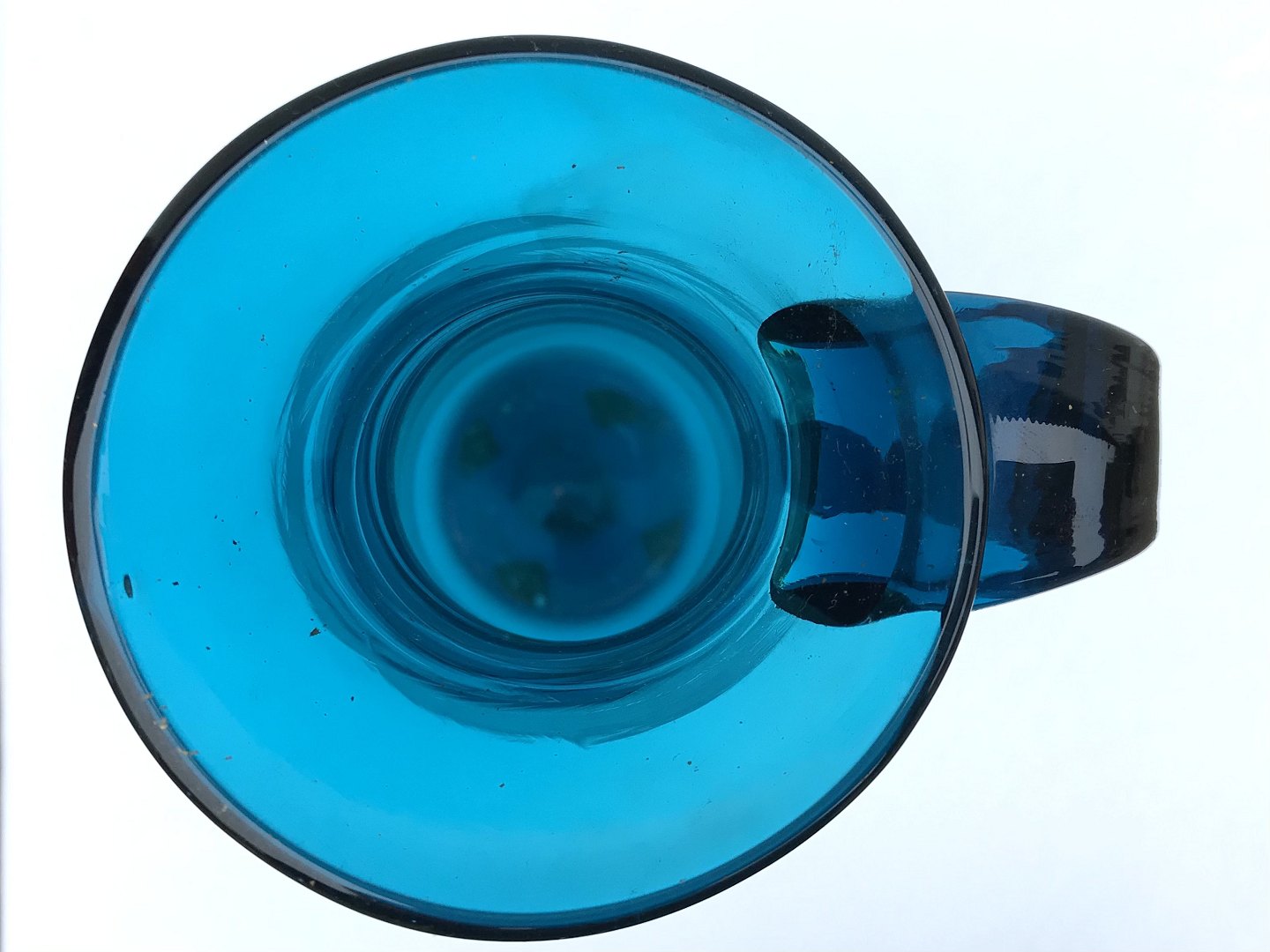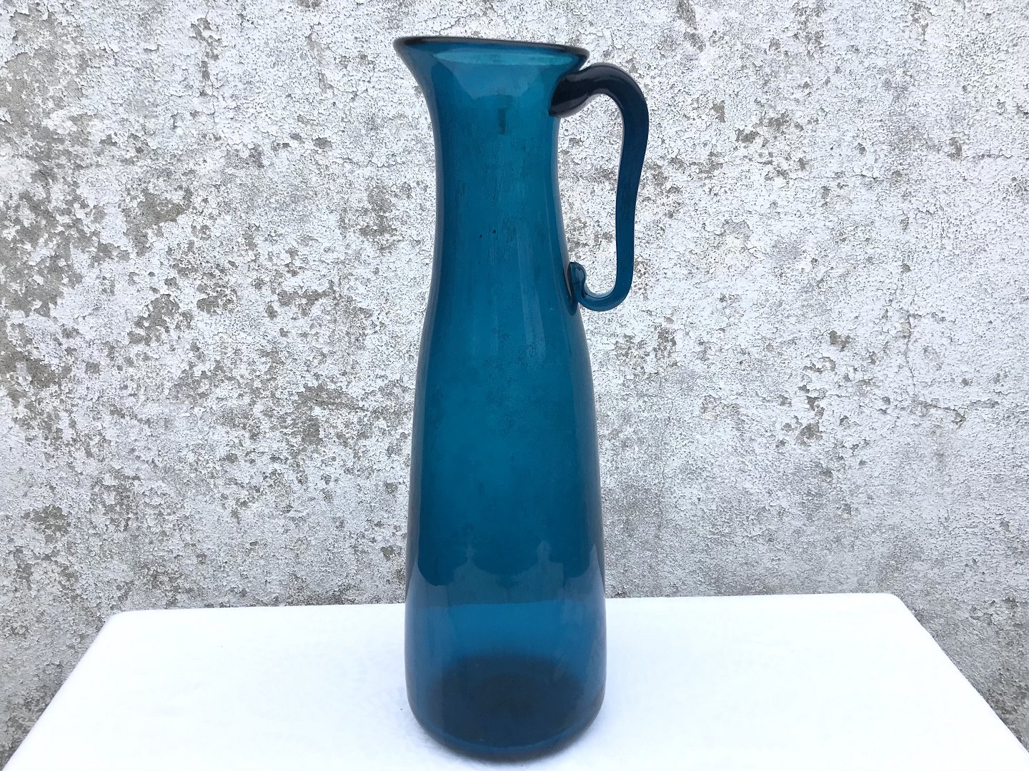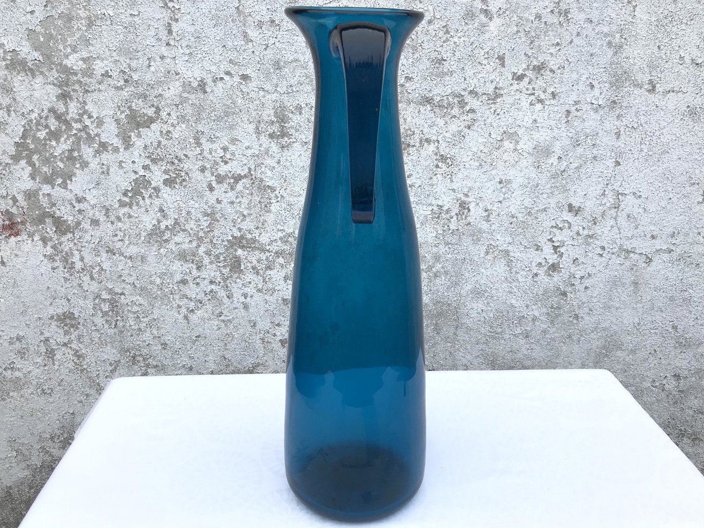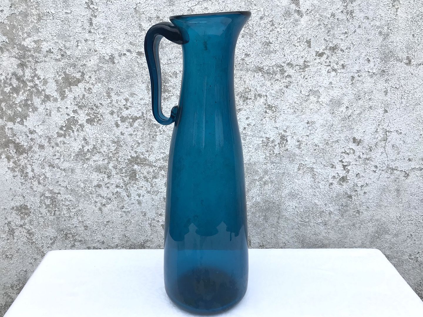 Blue glass jug, 41cm high, Approx. 15cm in diameter * Nice condition with a little dirt at the bottom *