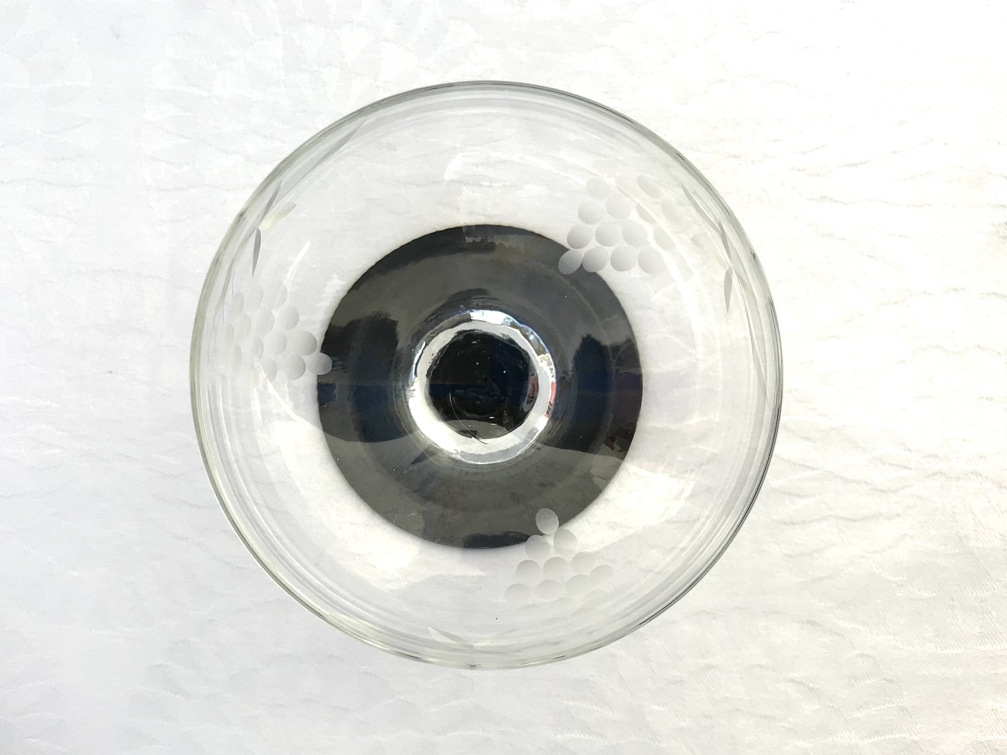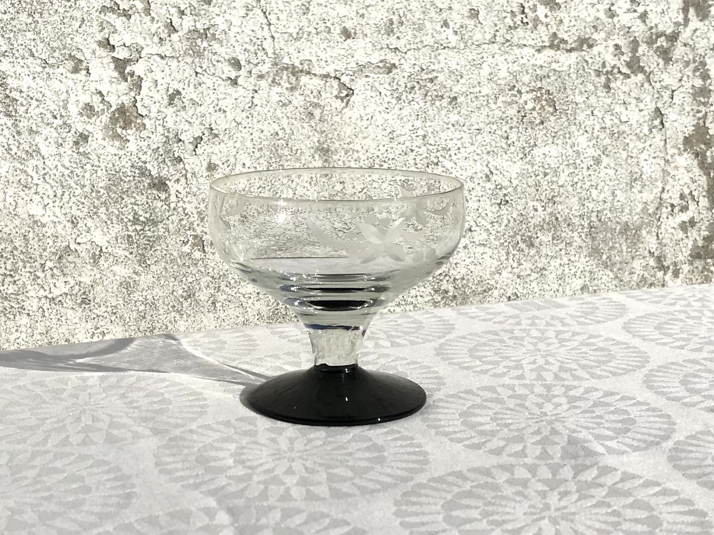 Kastrup glasværk, Dessert / Champagneskål med drueklaser og sortfod, 9,5cm i diameter, 8cm høj *Perfekt stand*
