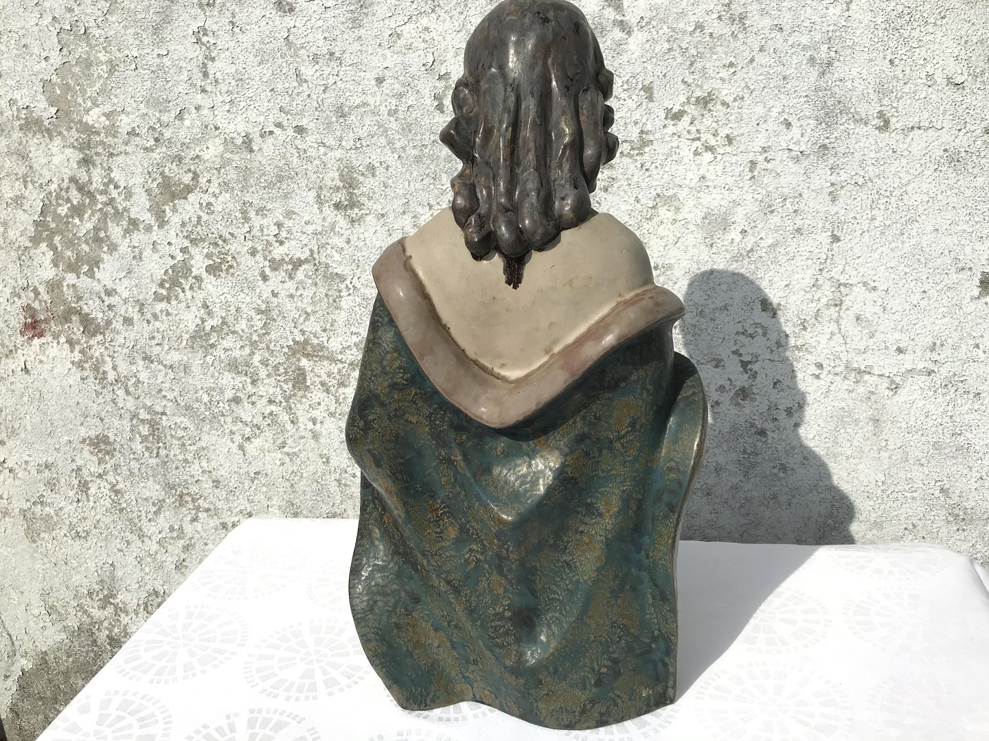 Large Lladro figure, stoneware, Woman in prayer, 42cm high, 22cm wide, Design Julio Fernändez * Nice condition with few traces of wear and minimal notch on the edge (see last photo) *
