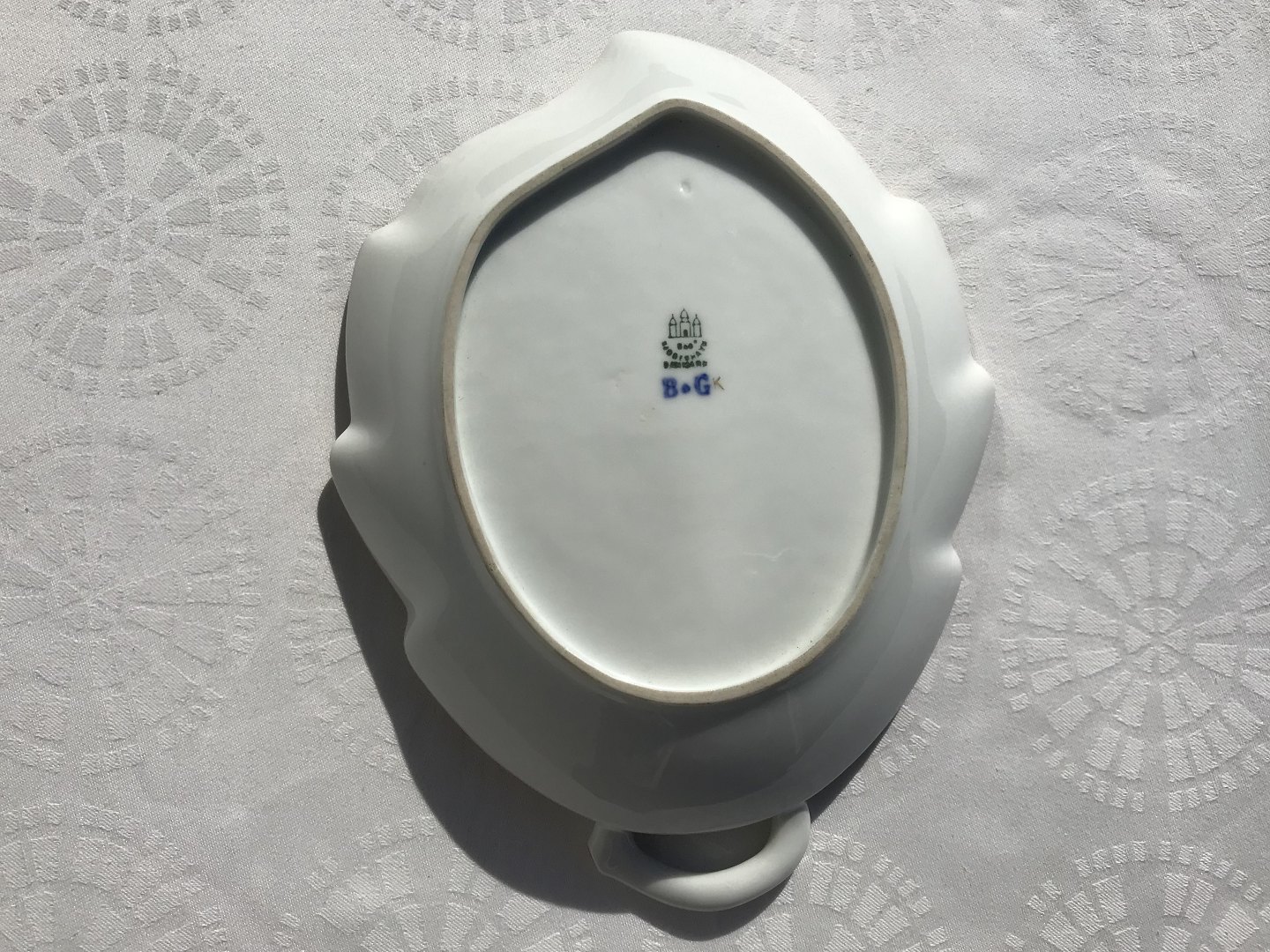 Bing & Grøndahl, Saksisk blomst på hvidt porcelæn, Bladfad #B&G, 24cm bred *Pæn stand*